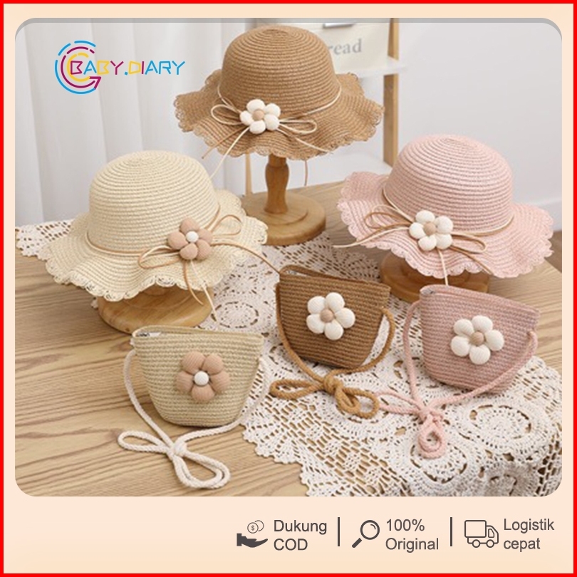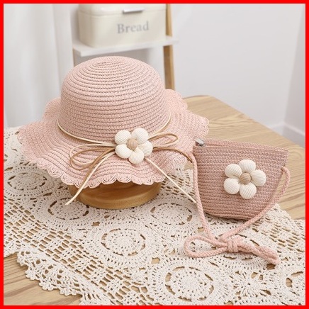 Topi Jerami Anak Tas 2 Set Anak Perempuan Topi Matahari Bunga Lucu Dan Ransel