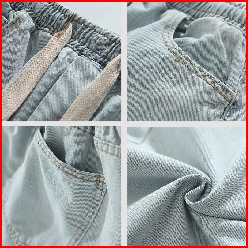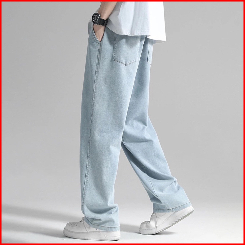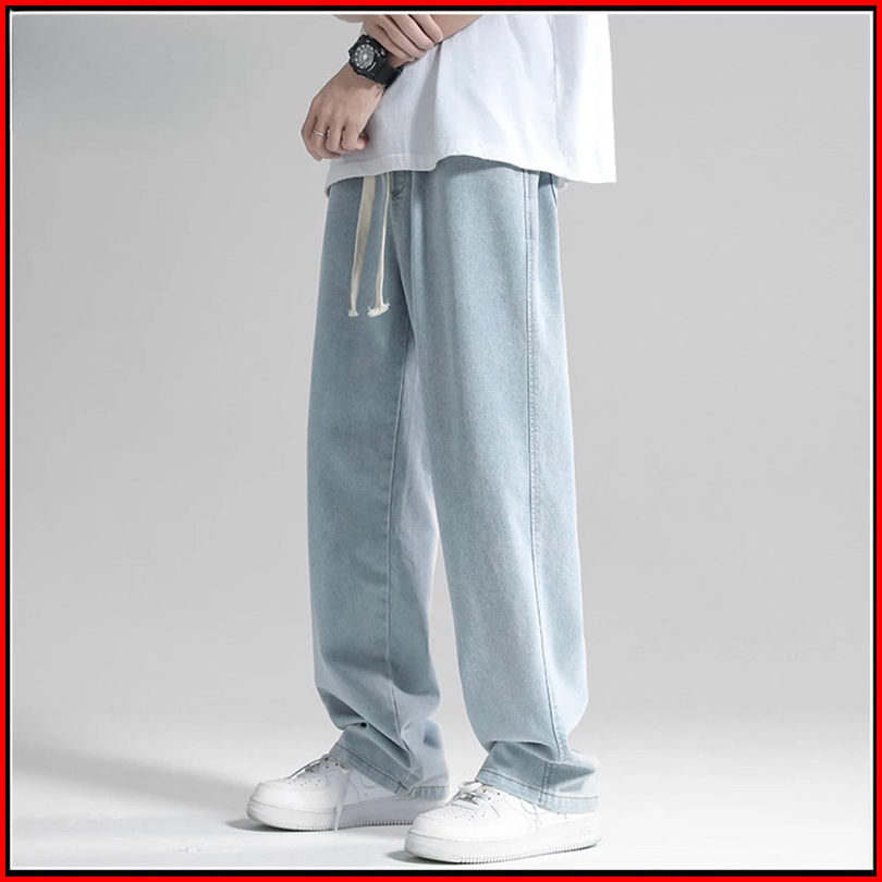 Celana Jeans Pria Pinggang Karet Korean Style Loose Pants Kulot Jeans Biru Muda Oversize Jumbo Tali Serut Wide Leg Celan