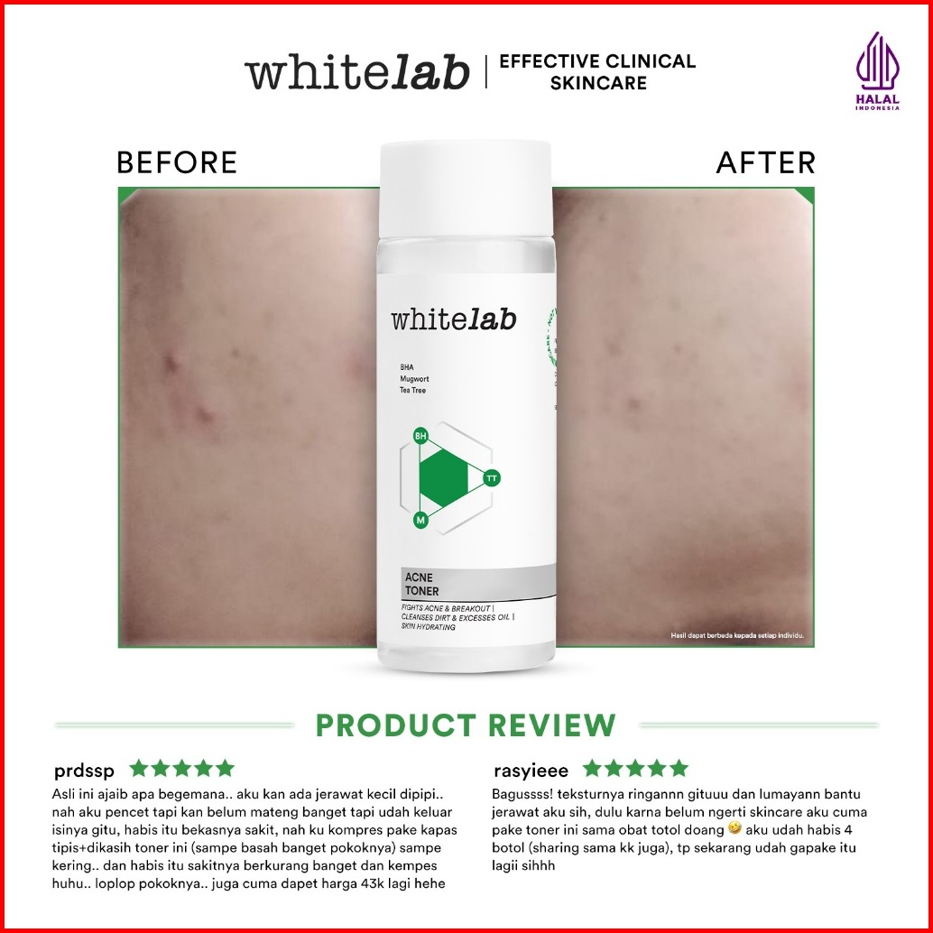 Whitelab Acne Toner - Toner Untuk Kulit Jerawat Menenangkan Dan Mengontrol Minyak Berlebih Dengan Bha Mugwort Tea Tree B