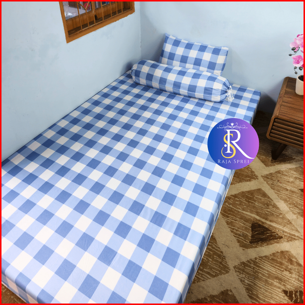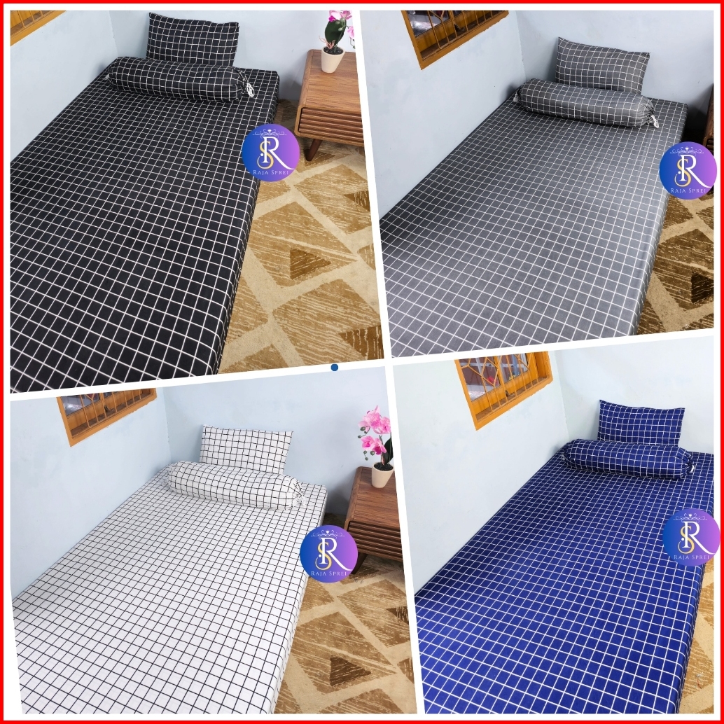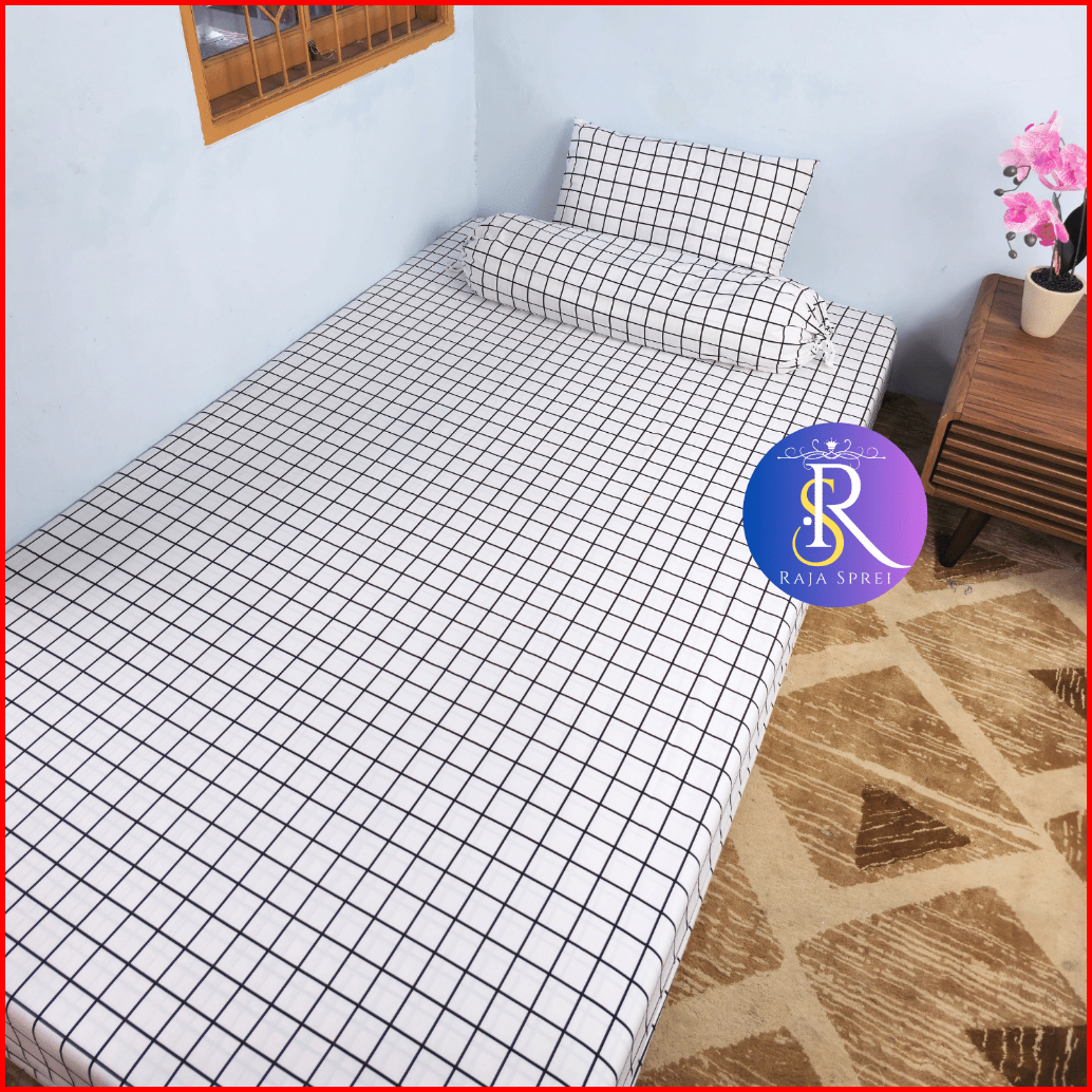 Sprei Single No.4 90x200 Motif Aesthetic Monochrome Kotak Hitam Karakter Bunga Set Bantal Guling