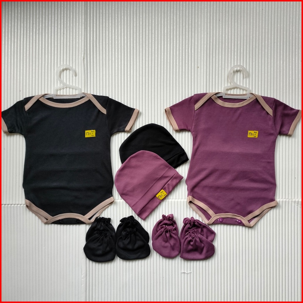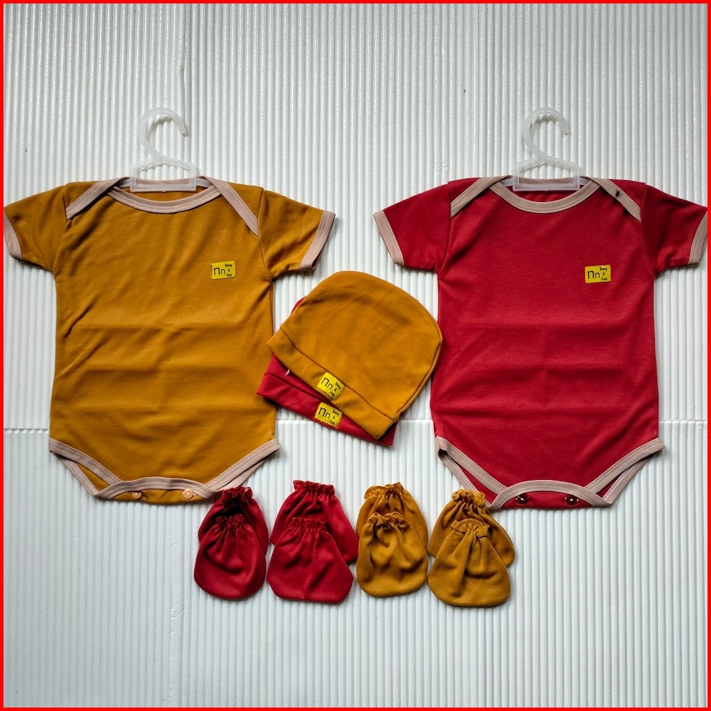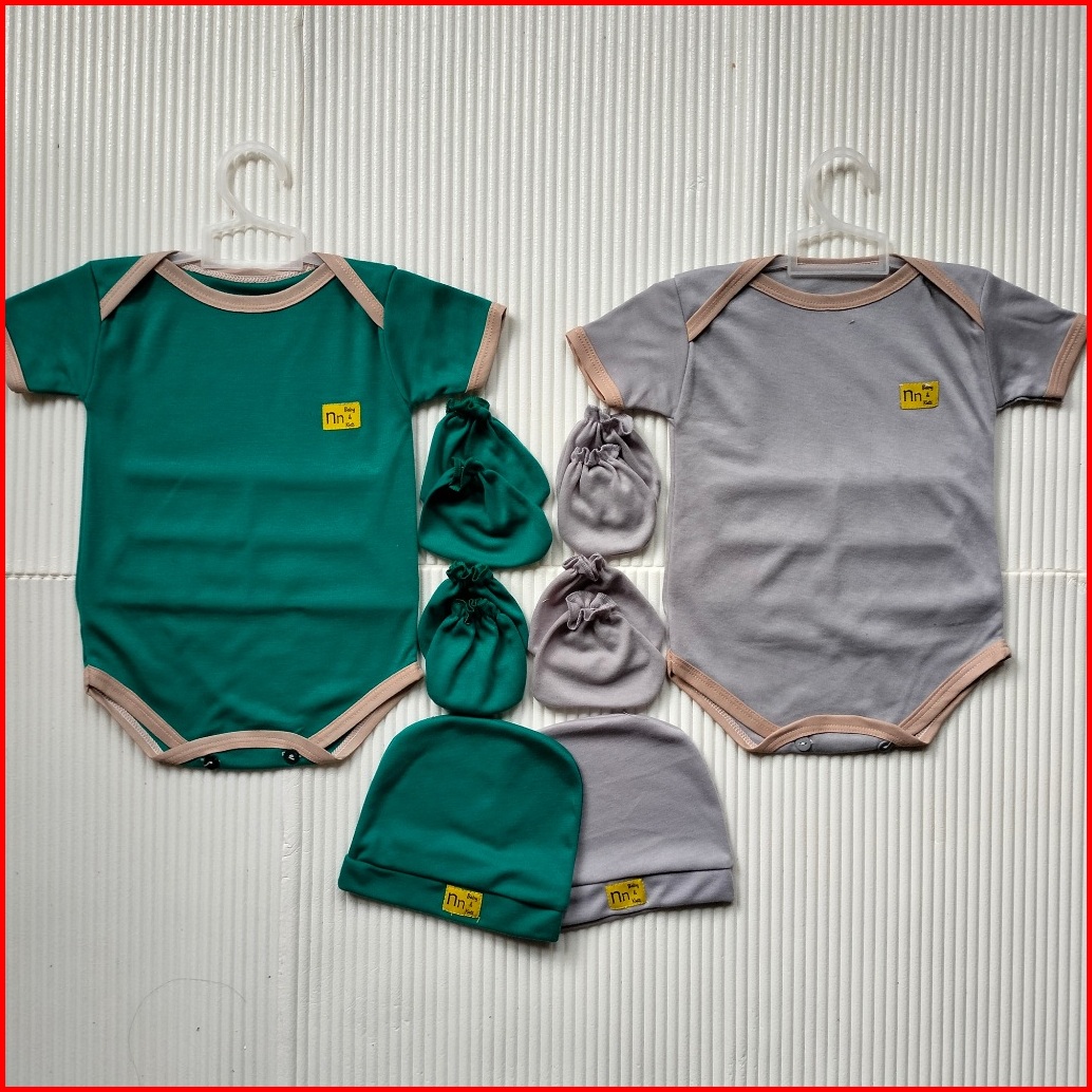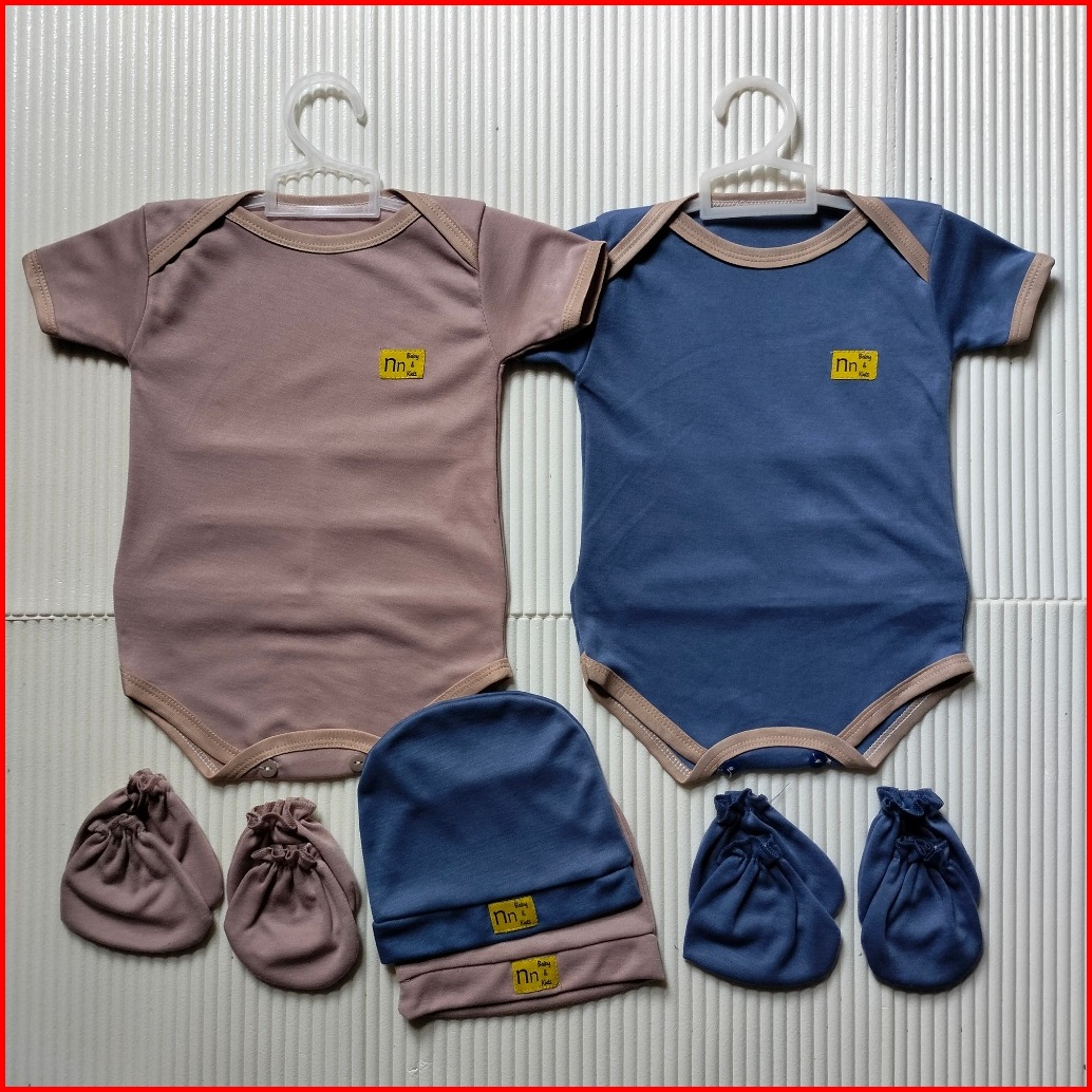 Nn Baby 2 Set Bodysuit Baru Lahir 0-12 Bulan Warna Jumper Newborn Topi Sartaki