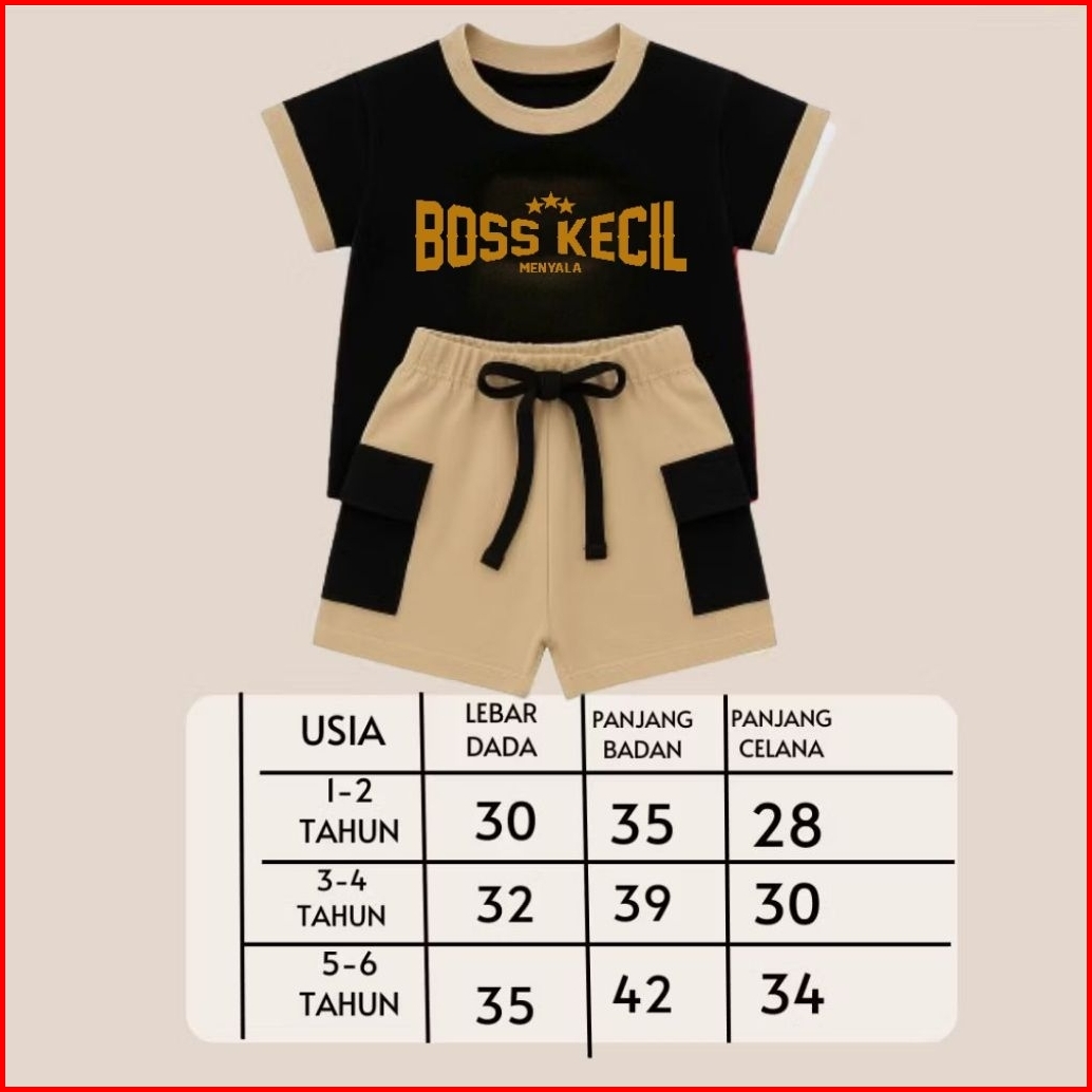 Setelan Baju Anak 1-6 Tahun Set Cargo Kaos Anak Baju Anak Bos Kecil