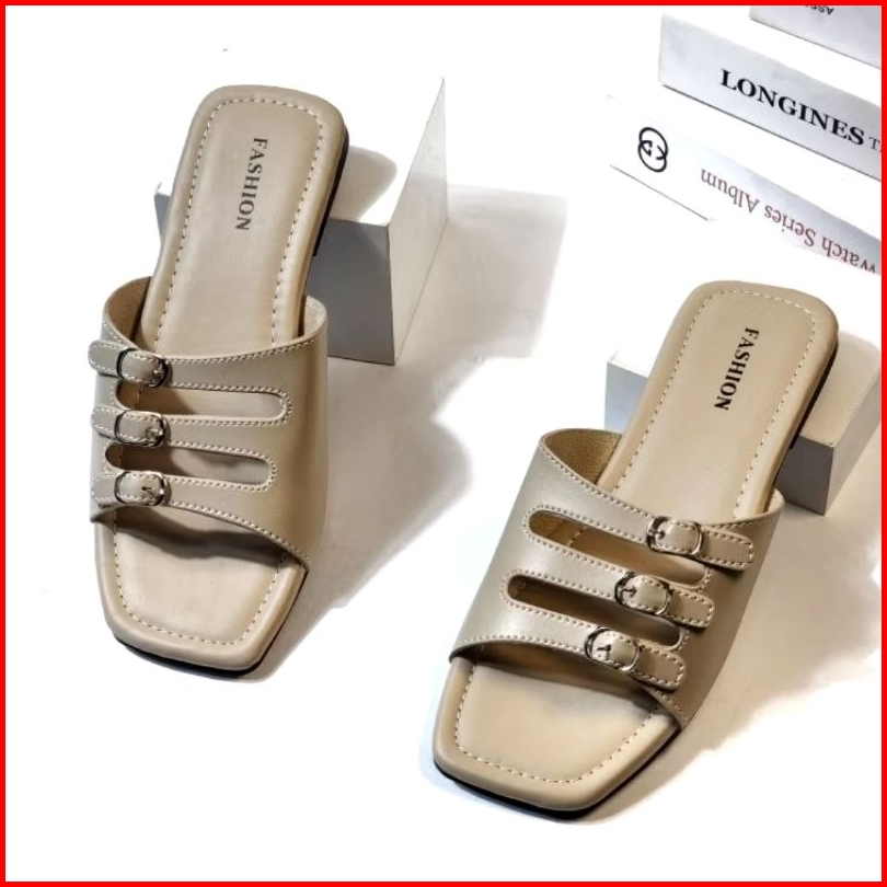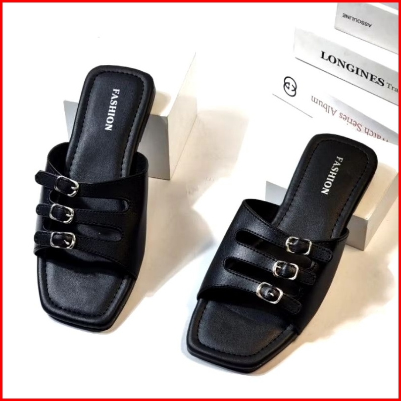 Sandal Flat Teplek Wanita Daily Casual Tali Strap Polos Sandal Slop Cewek Elegan Anti Licin Sendal Kasual Dan Formal