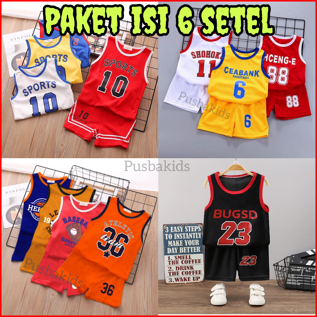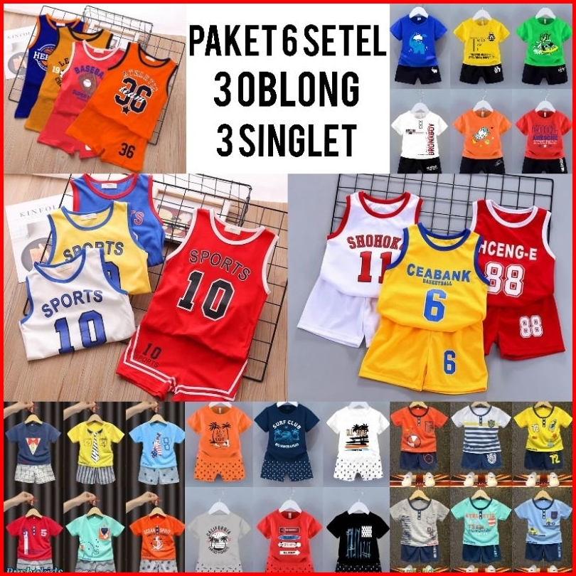 Paket Isi 6 Setel Setelan Singlet Anak Cowok Setelan Anak Laki Laki Random
