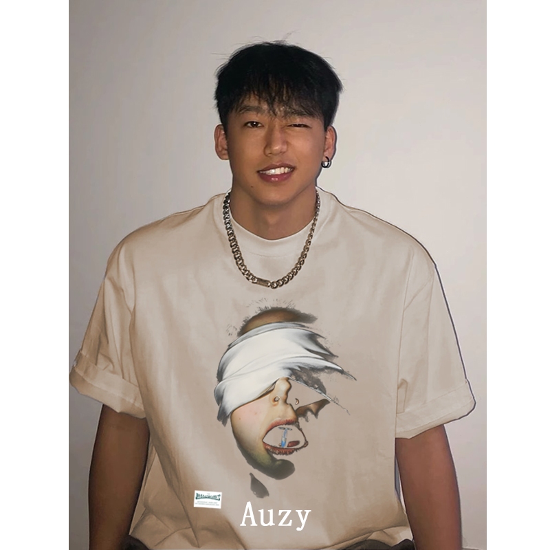 AUZY retro Amerika wajah manusia kaos pria wanita T-shirt baju oversize t shirt distro
