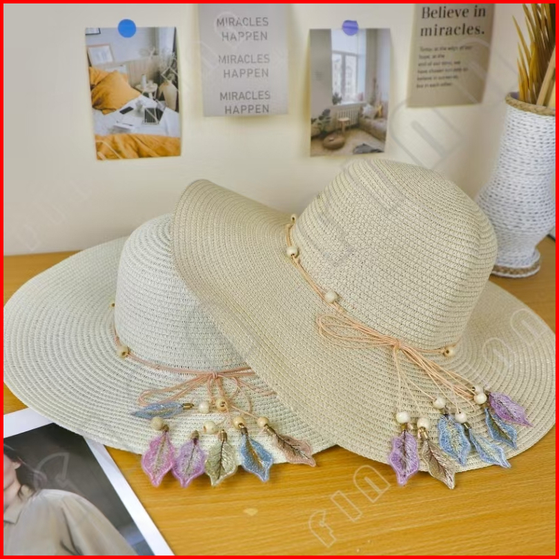 Finn Topi Pantai Jerami Visor Lebar Beach Hat Topi Tropis Wanita Fashion