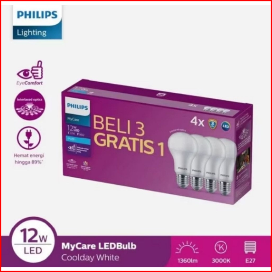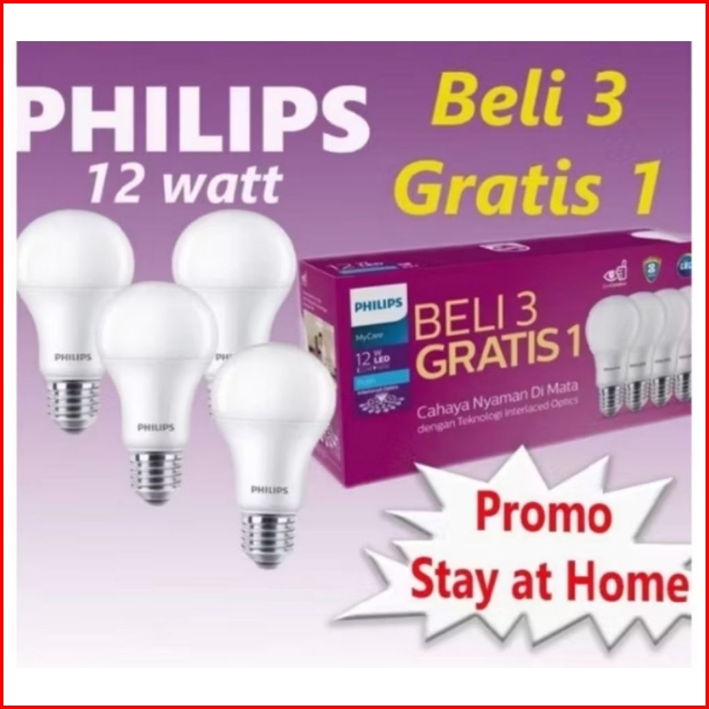 Paket Isi 4 Pcs Lampu Led Philips 12w Mycare Promo Beli 3 Gratis 1-promo Philips Mycare Multipack