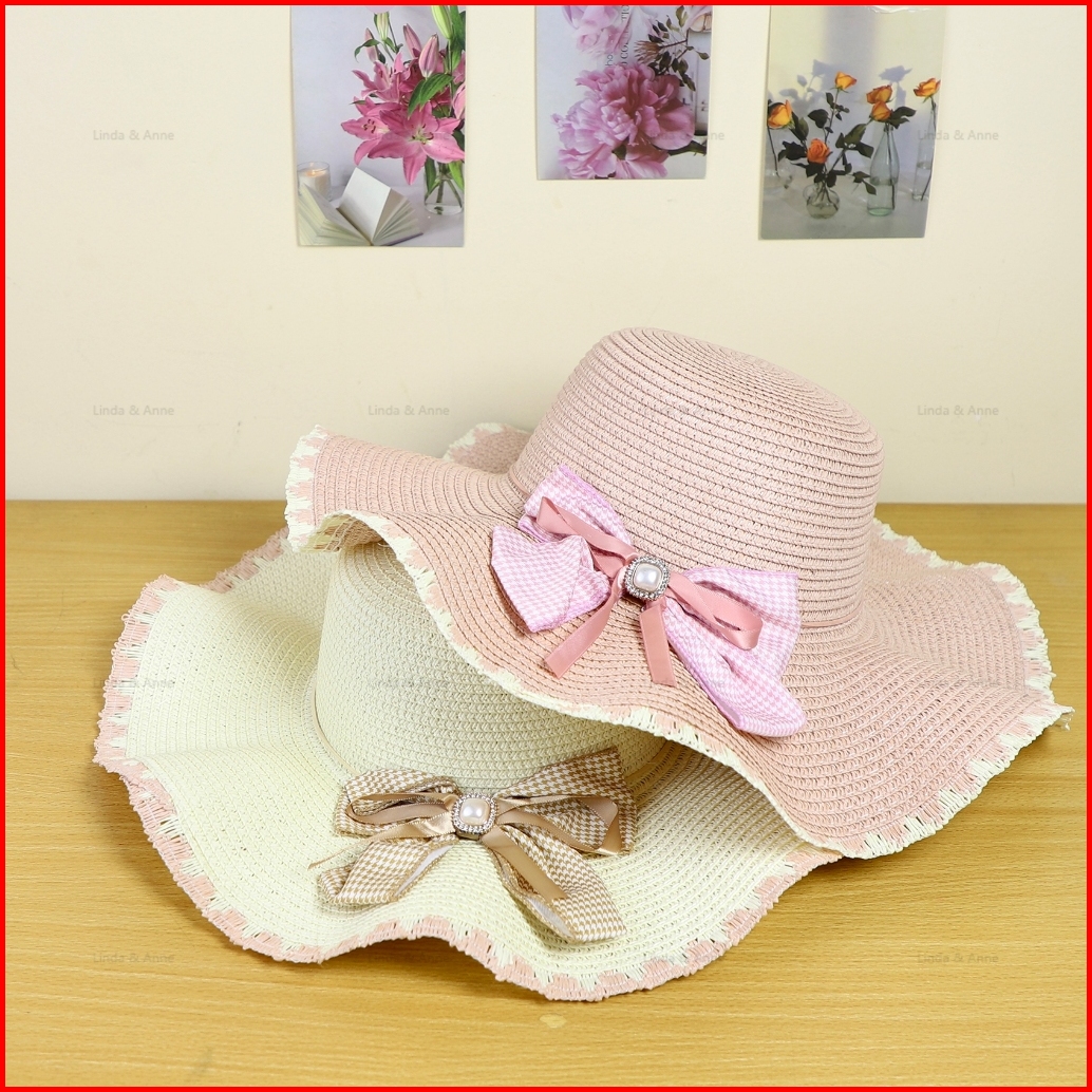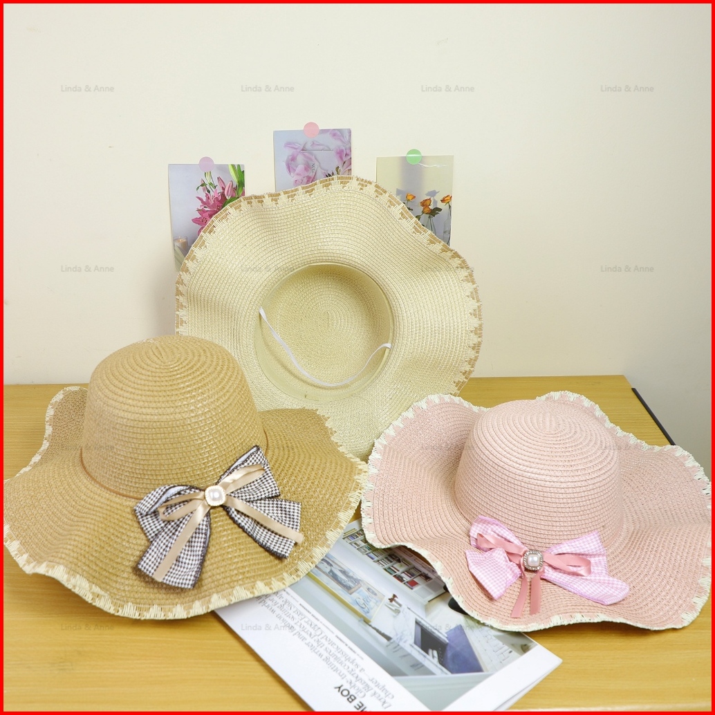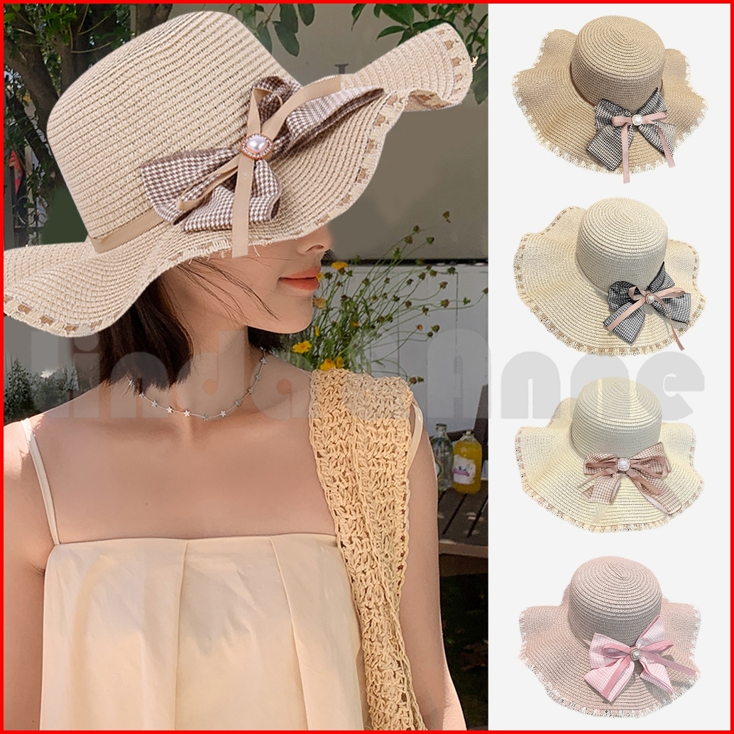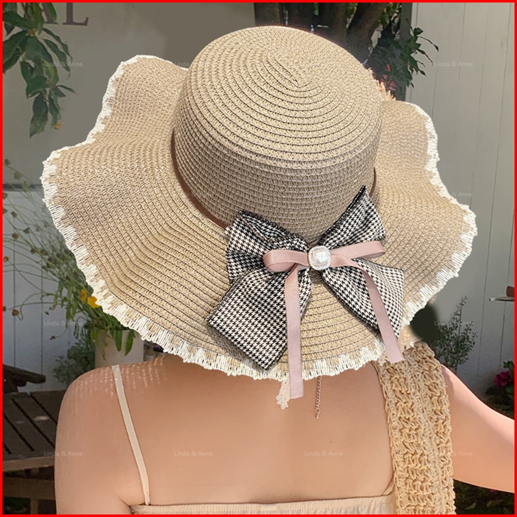 L A Topi Pantai Wanita Dewasa Paper Rajut Pita Beach Hat Topi Pelindung Uv Fashionable