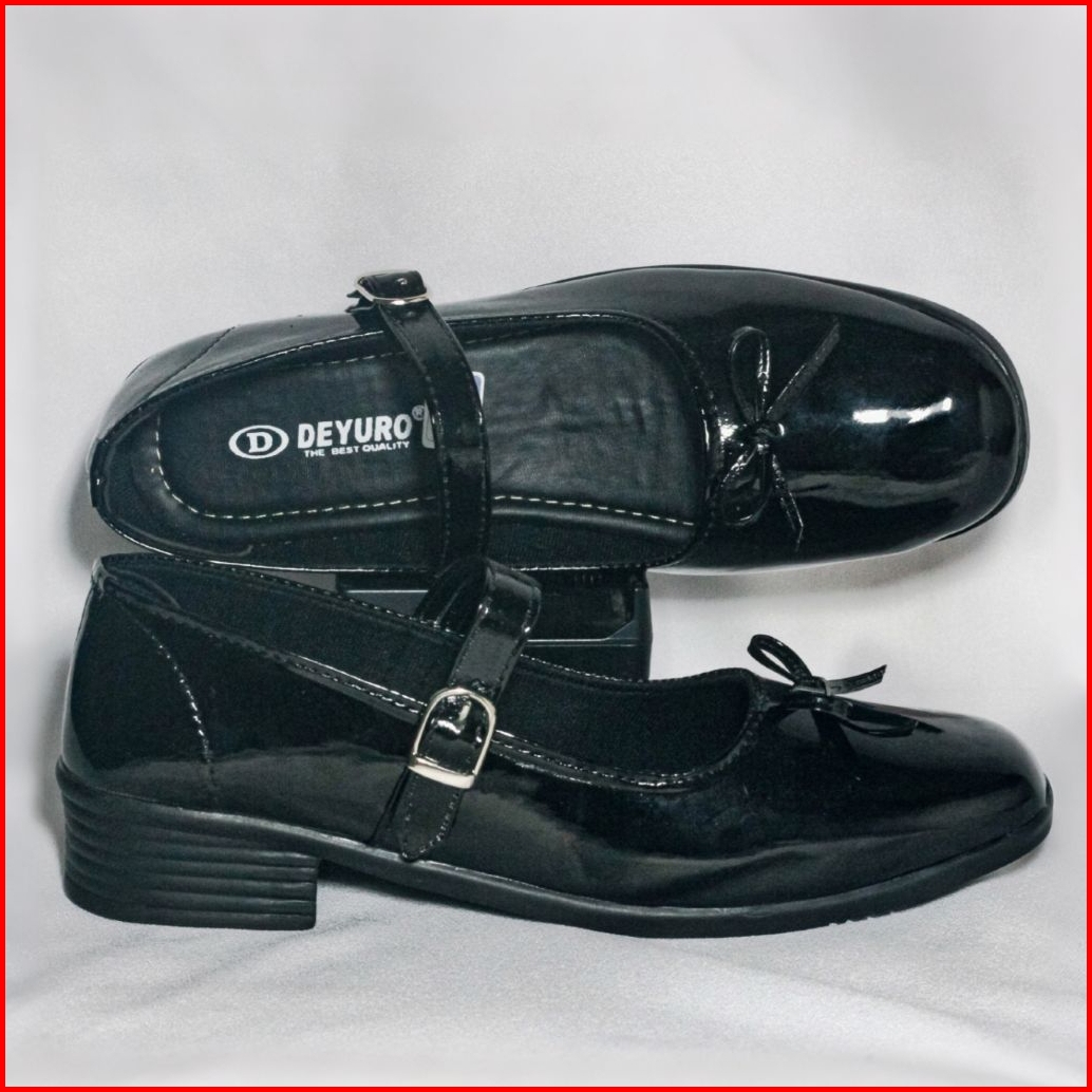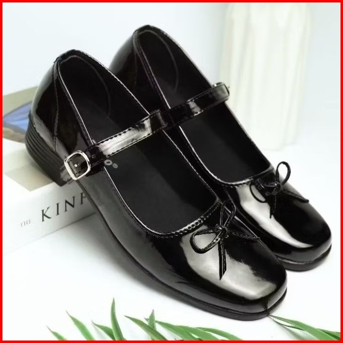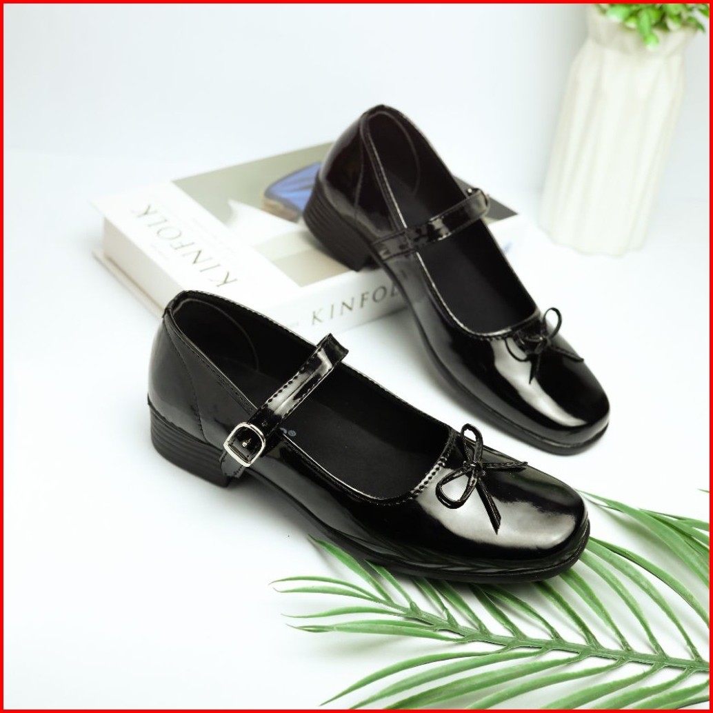 Sepatu Pantofel Gesper Hitam Glossy Pita Hak 3 Cm