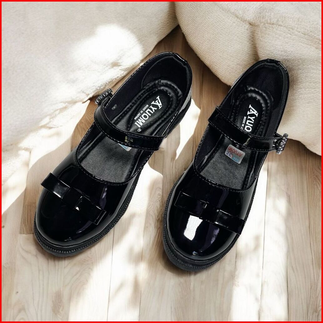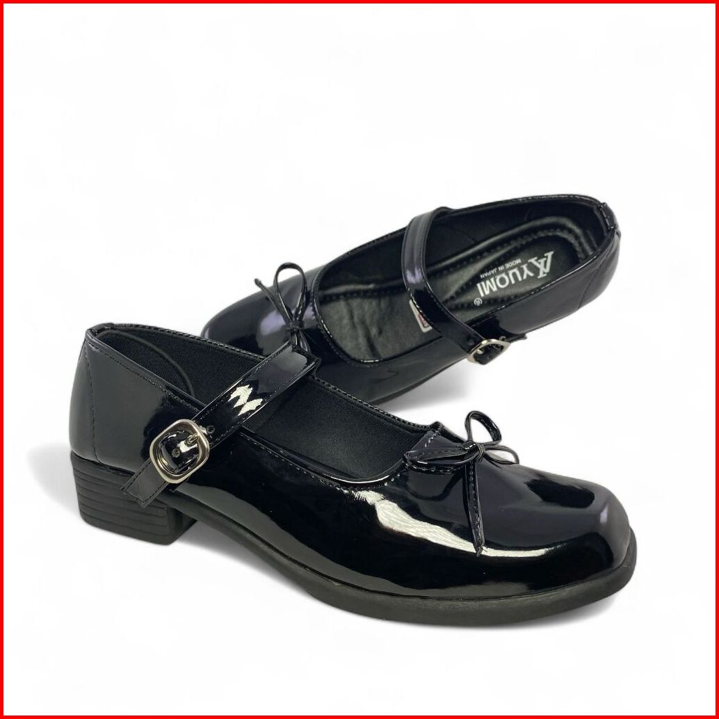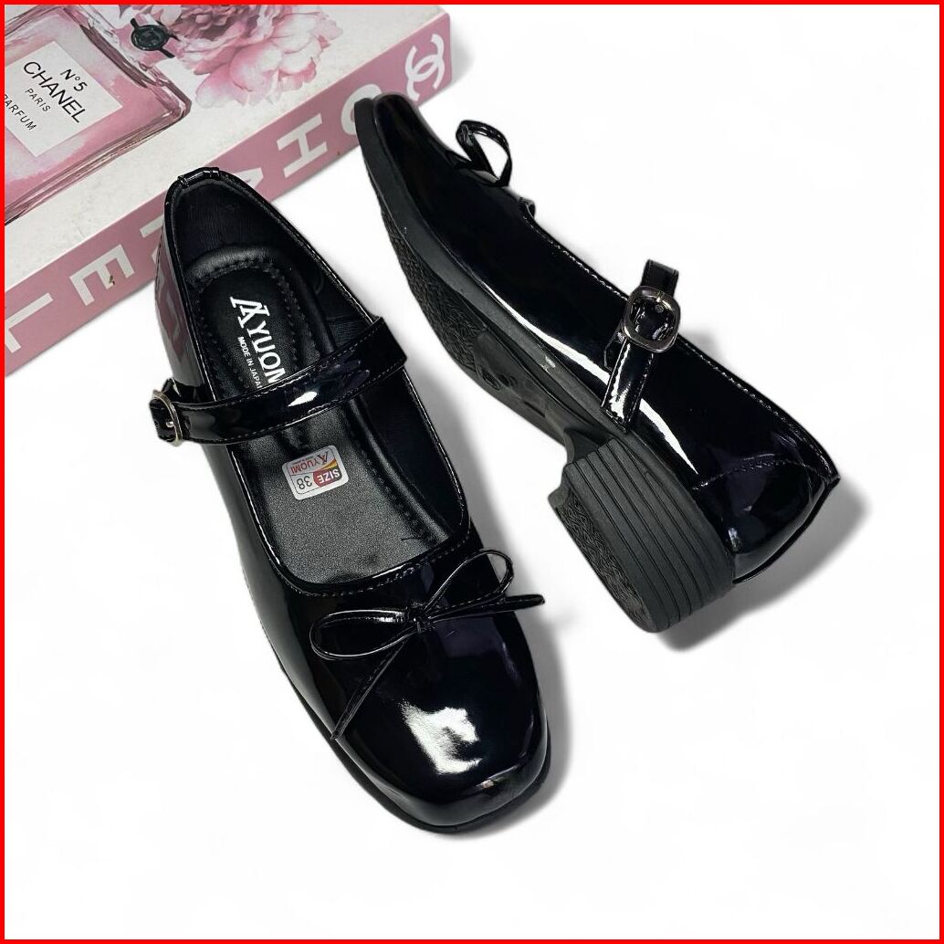 Yuomi Sepatu Pantofel Wanita Paskibra Hitam Glossy Gesper Hak 3cm