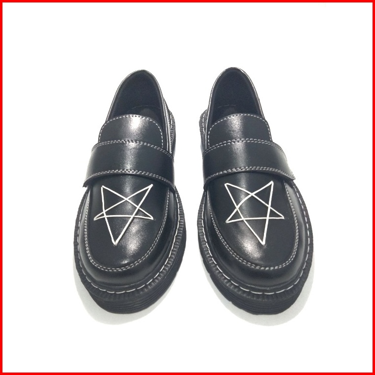 Sepatu Penny Loafer Docmart Bintang Hitam Putih Vintage Pria Wanita Formal Kasual Velcro