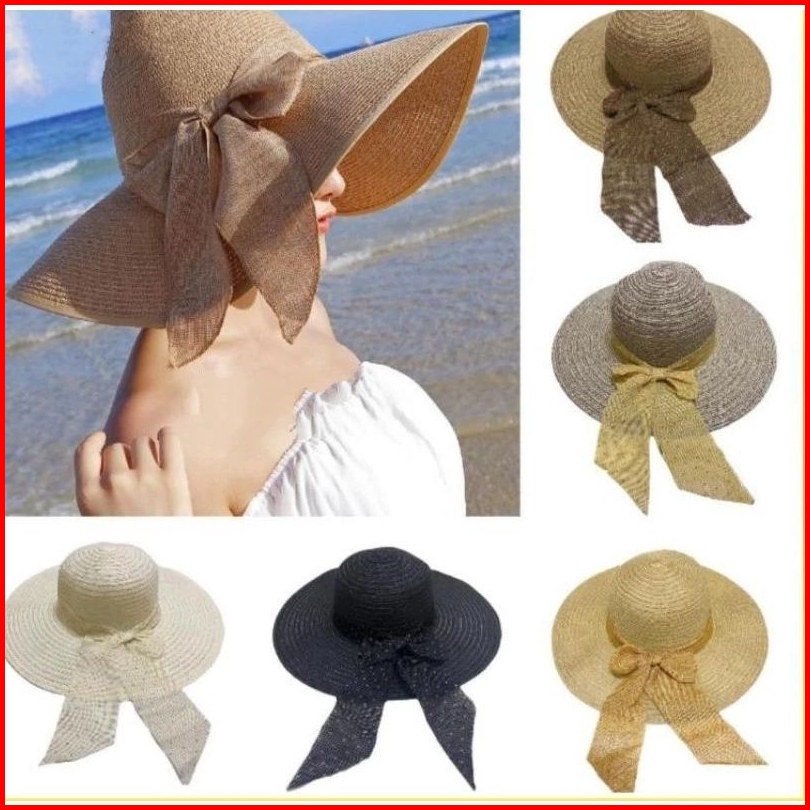 Topi Pantai Wanita Pita Rajut Premium Import Topi Bulat Bintik Wanita T2