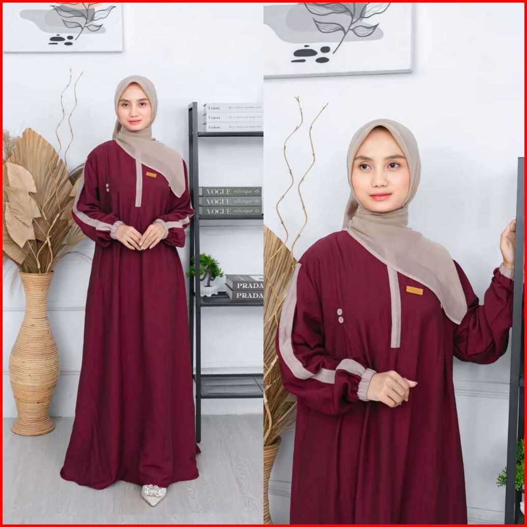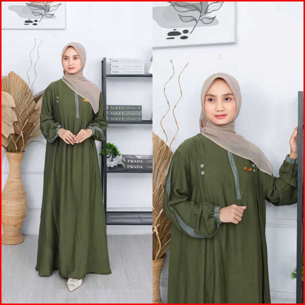 Faiza Dress Gamis Muslim Wanita Polo Linen Polos Busui Cantik Kekinian