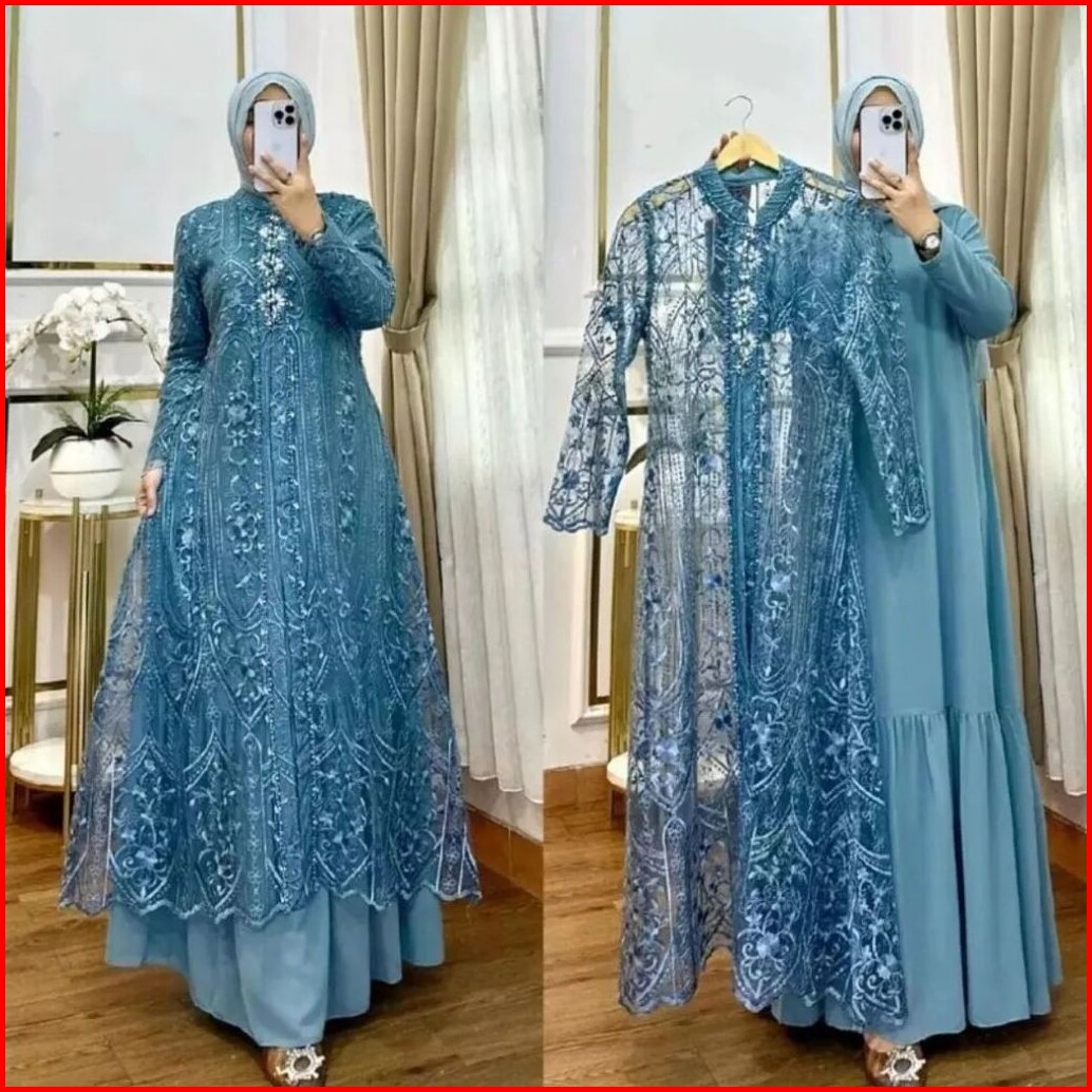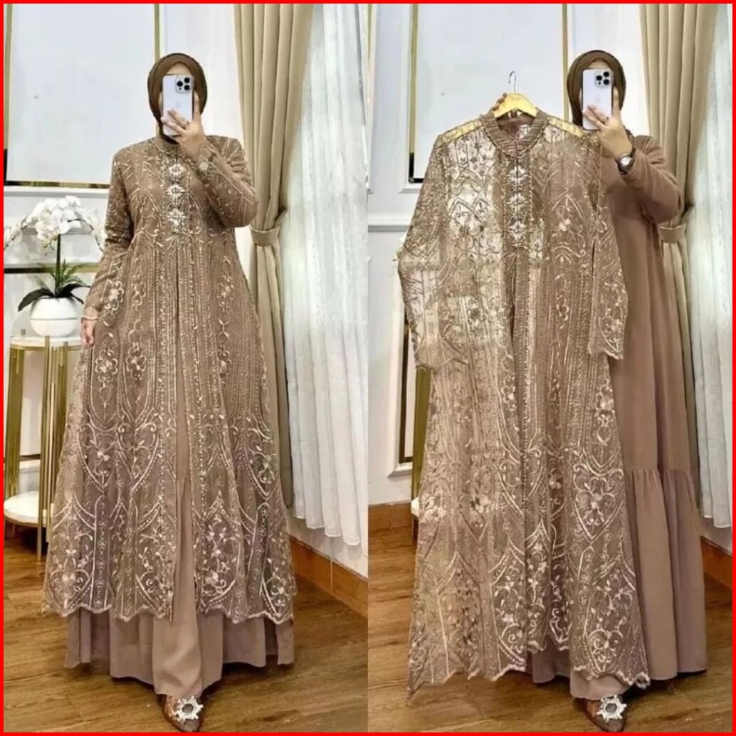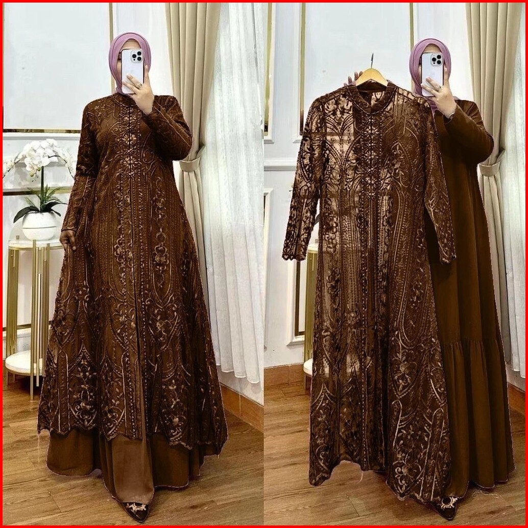 Fashion Muslim Laksmi Dress Set Outer Brukat Bahan Ceruty Babydoll Full Puring Gamis Kondangan Kekinian Korean Style