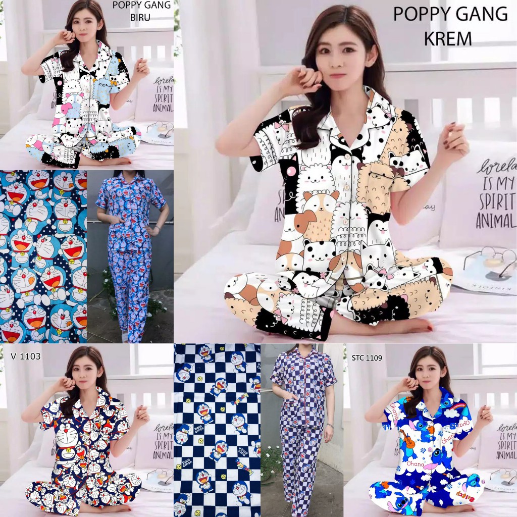 BJ - PIYAMA CP Wanita Karakter - Baju Tidur Wanita Murah Lengan Pendek
