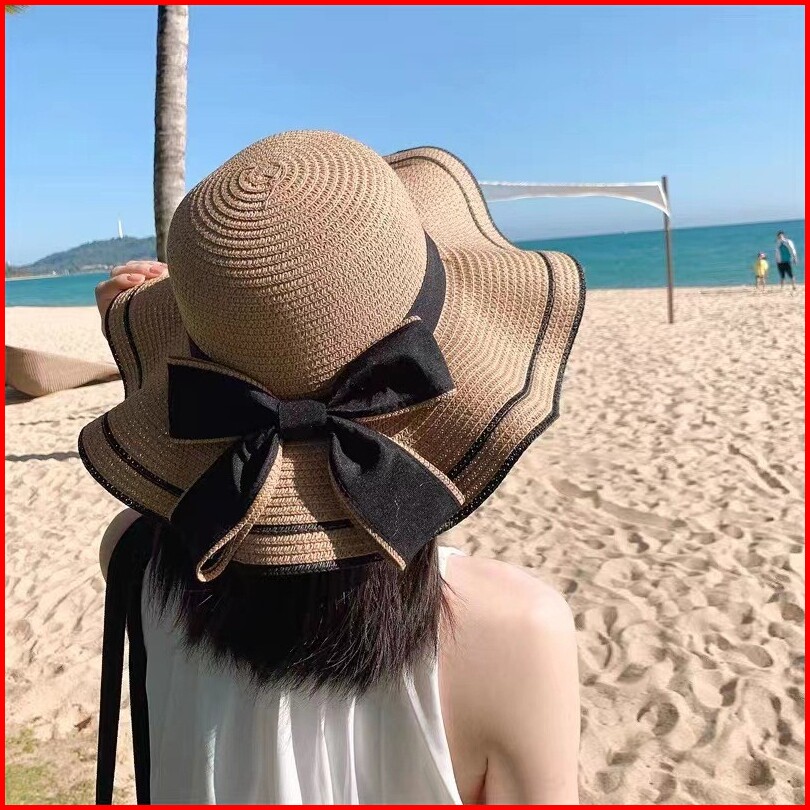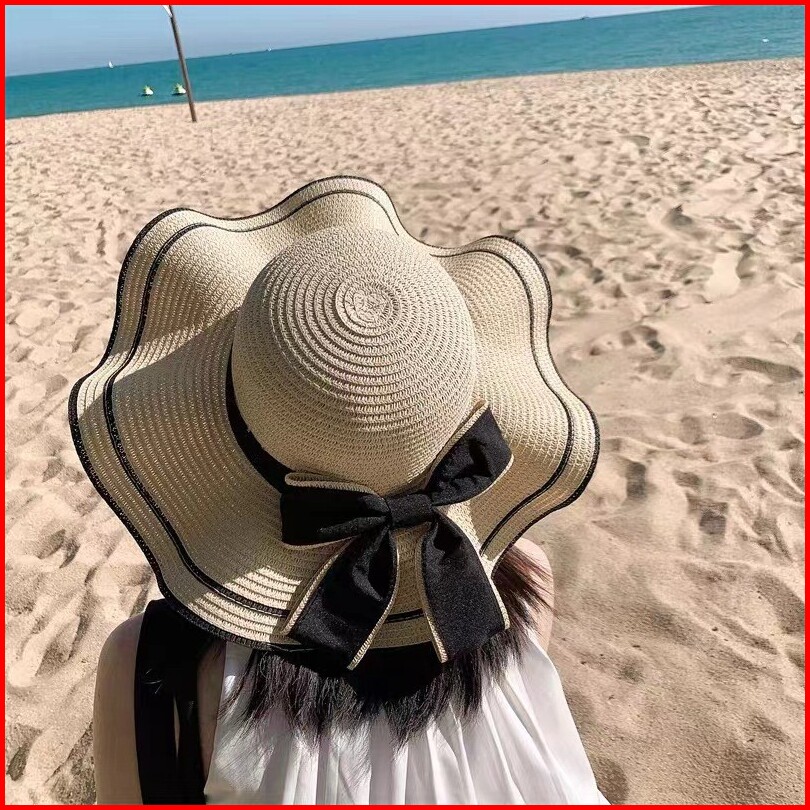 Topi Pantai Wanita Gelombang Topi Bundar Aksen Pita Cantik Topi Anti Uv Topi Pantai Pita Topi Anti Matahari Topi Visor T