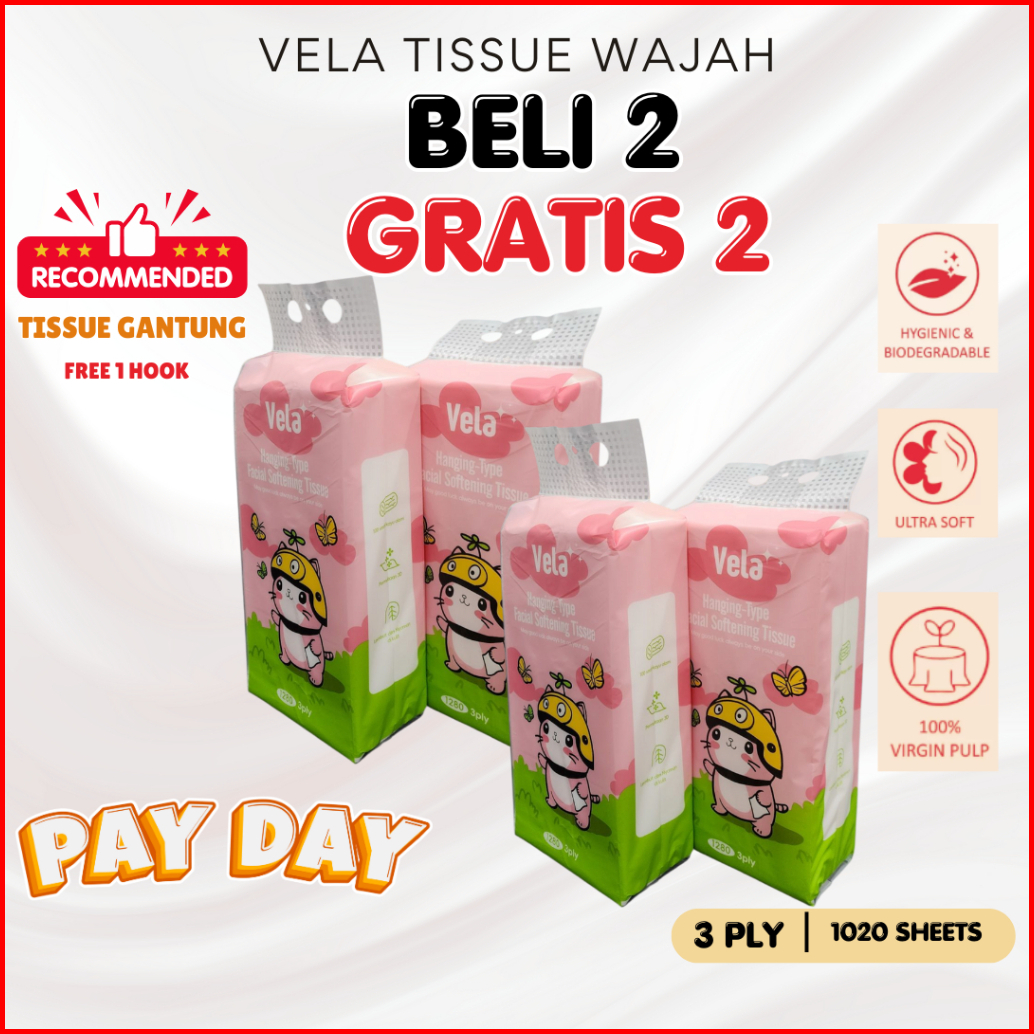 4 Pak 3 Ply 1020 Sheets Tissue Gantung Vela Tissue Elegan Tissue Minyak Tissue Serbaguna Tissue Mobil Tisu Wajah Ibu Dan