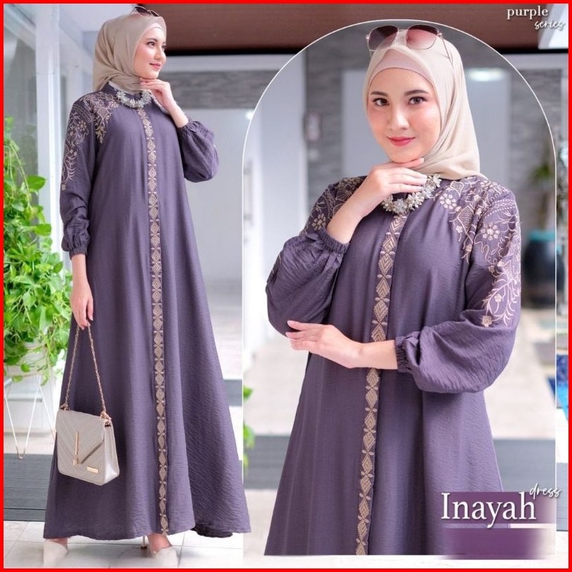 Gamis Inayah Dres Bahan Bordir Baju Kondangan Seragaman Lebaran 2025 Termurah Kualitas Terbaik