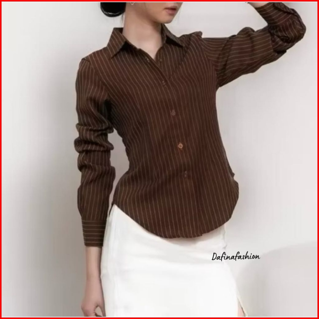 Kemeja Wispei Atasan Wanita Motif Salur Fitted- Luna Stripe Kemeja Wispei Slim Fit Body - Baby Shirt Working Terlaris