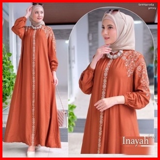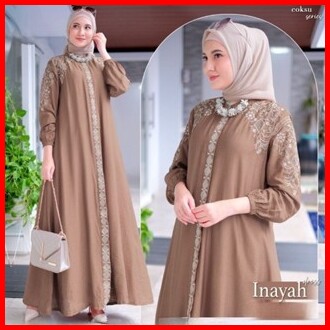 Inayah Dress Gamis Kondangan Mewah Adem Dan Elegant Gamis Polo Linen Mix Bordir Cantik Gamis Muslim Gamis Pengajian