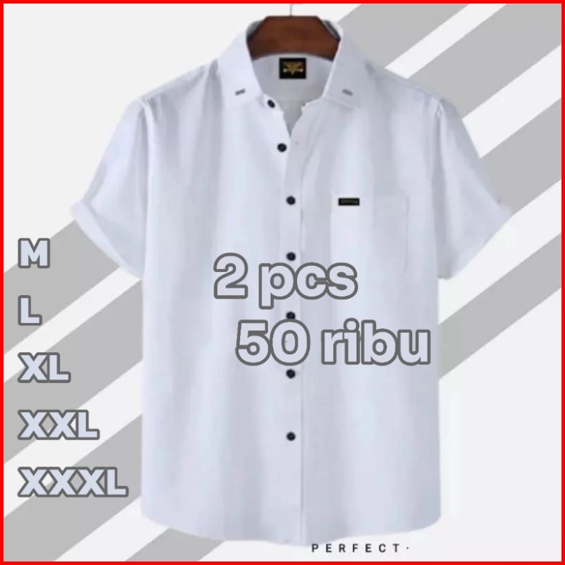 Paket Hemat 2 Pcs Kemeja Polos Lengan Pendek Katun Distro Premium Terbaik M Sampai Xxxl