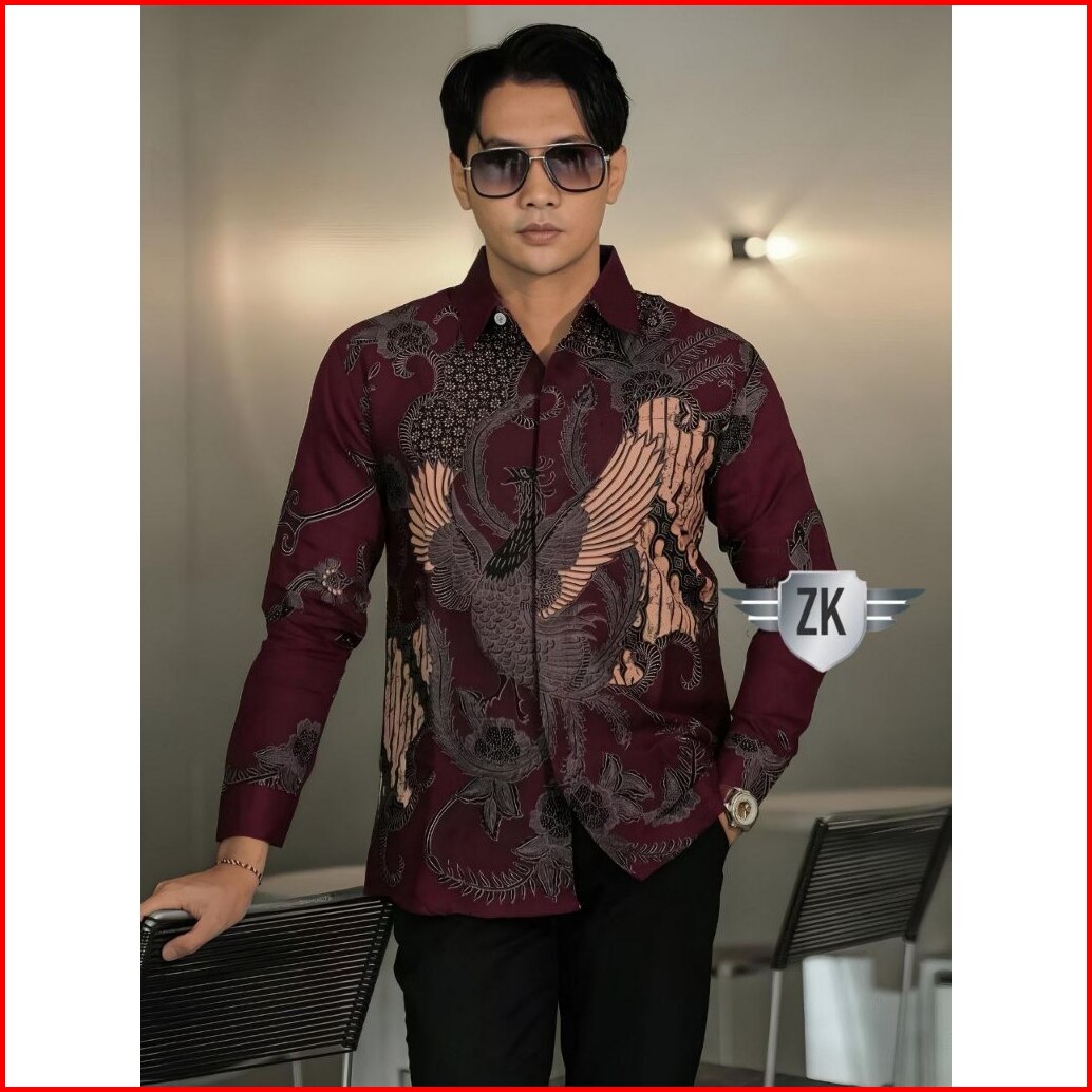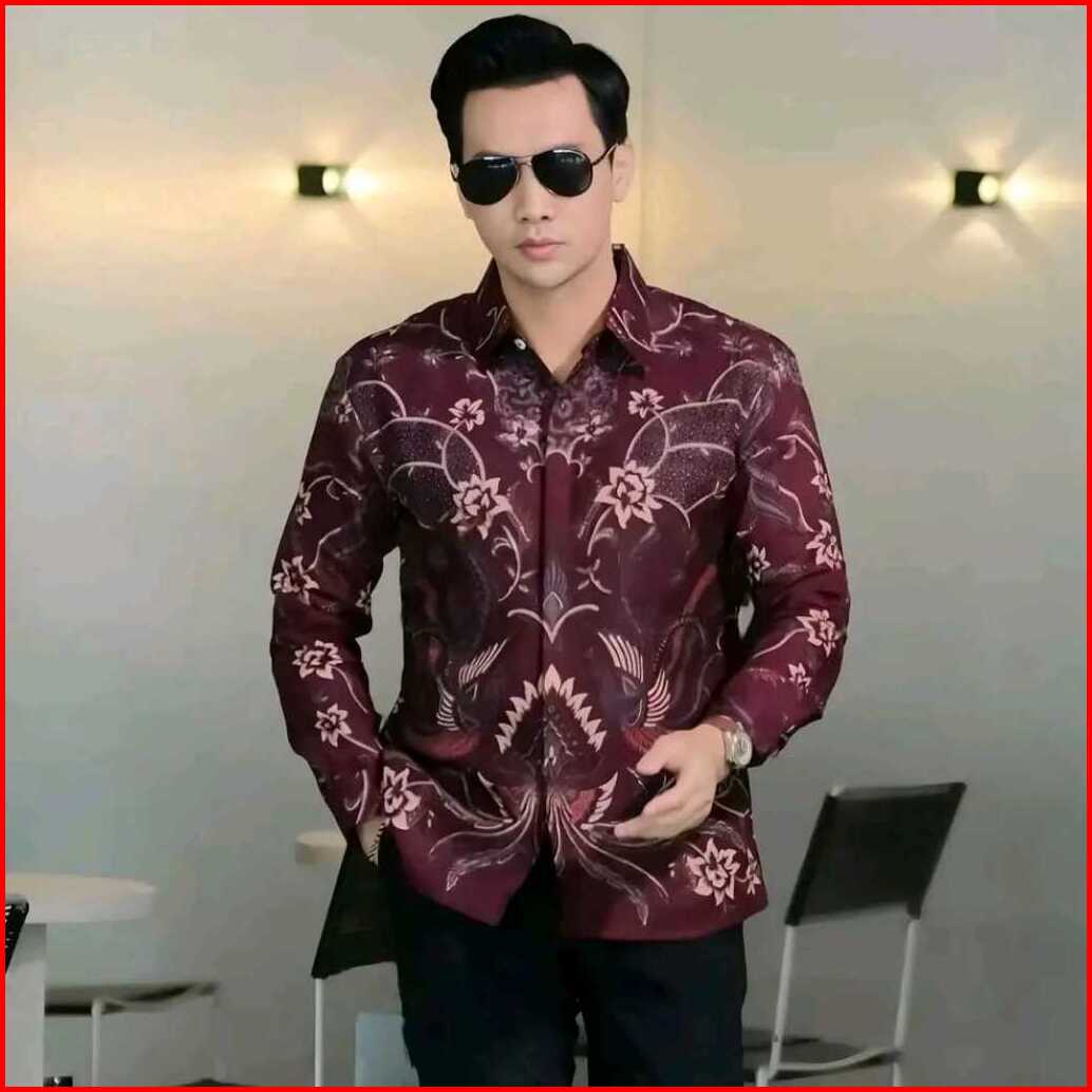 Kemeja Batik Pria Burgundy Best Seller 2025 Kemeja Batik Lengan Panjang M L Xl Xxl