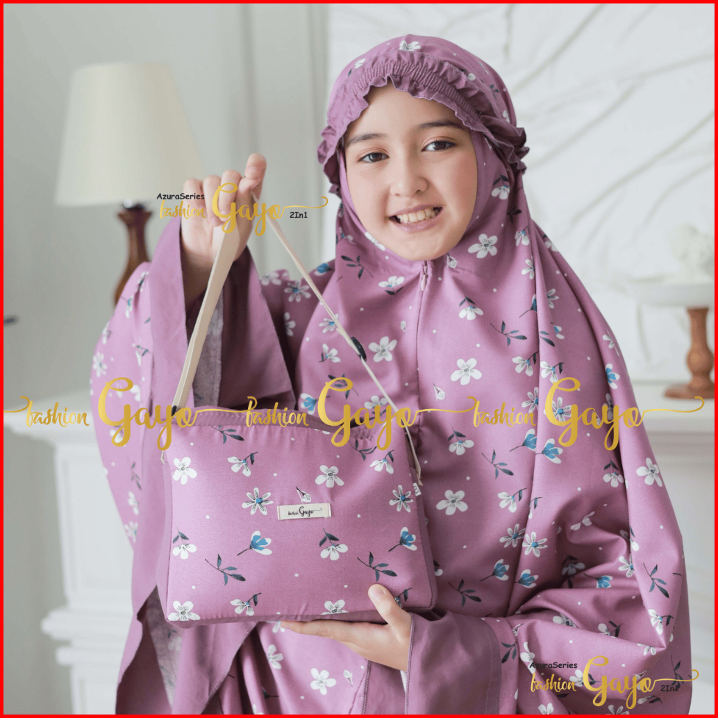 Fashion Gayo Azura Series - Mukena Anak Tanggung 5 -14 Tahun Resleting 2in1 Motif Tas Ransel Premium