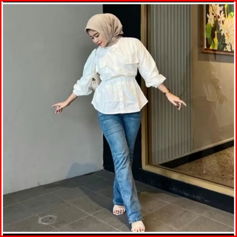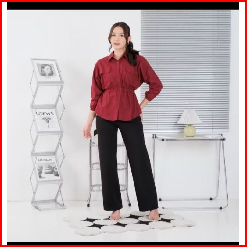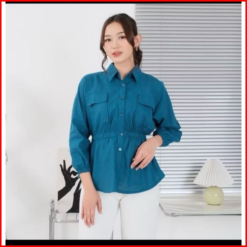 Beena Shirt Linen - Atasan Top Wanita Blouse Casual Modern Kantong Kanan Dan Kiri