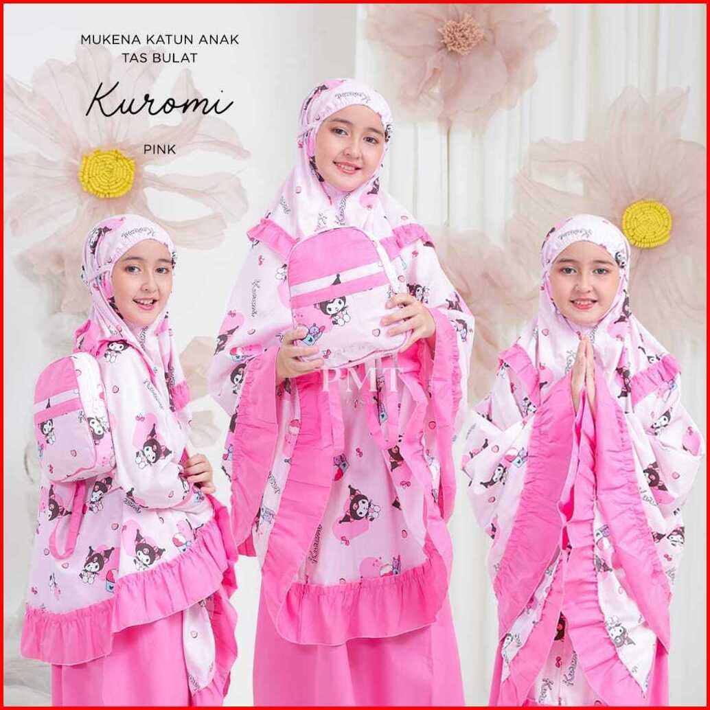 Mukena Labubu Kuromi Lavender Pink Motip Terbaru Viral Mukena Anak Usia 3-12 Tahun