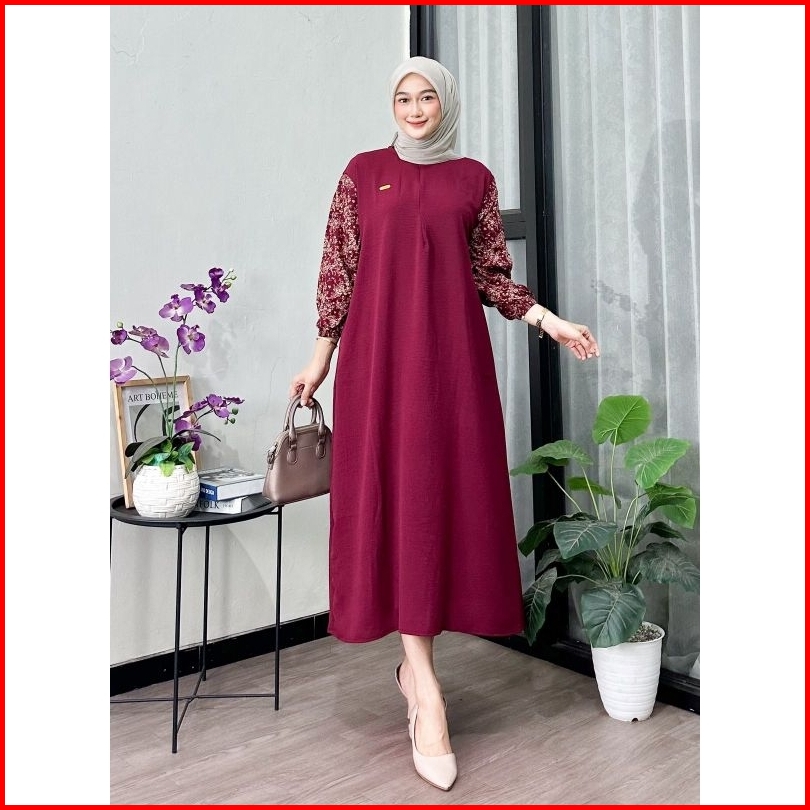Daster Isi 3pcs Gamis Fathia Kombinasi Lengan Motif Ld120 Pb125