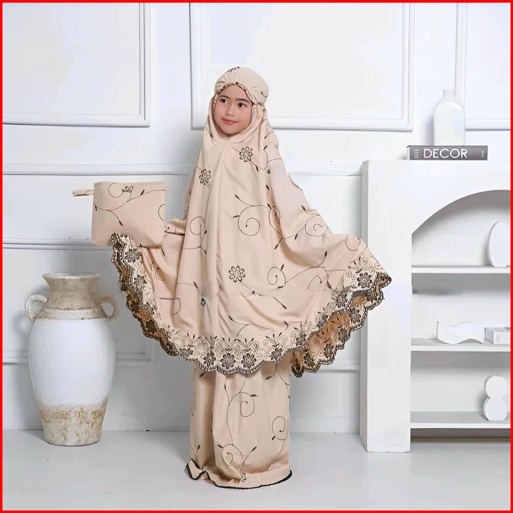 Mukena Anak Gracella 7-13 Tahun Bunga Teratai Full Bordir Katun Premium Free Tas