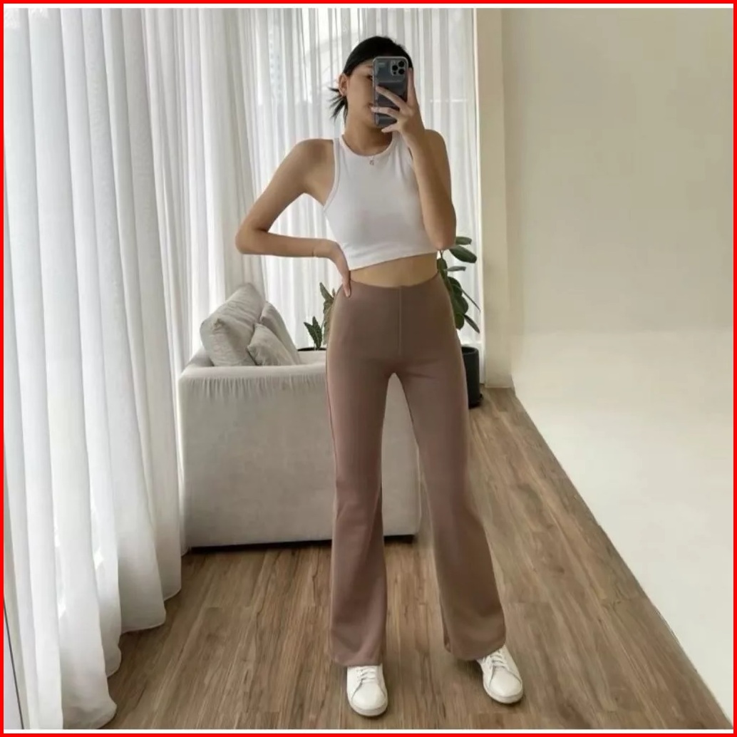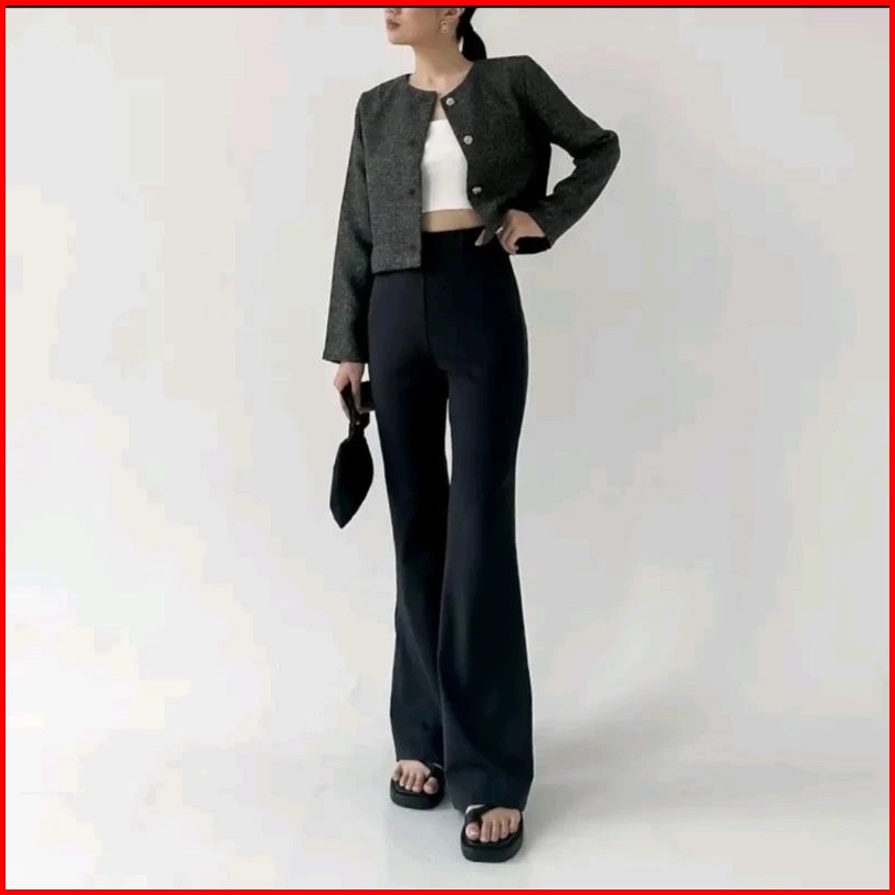 Netto - Celana Highwaist Flare Pants Celana Panjang Wanita Cutbray Kain Scuba Premium
