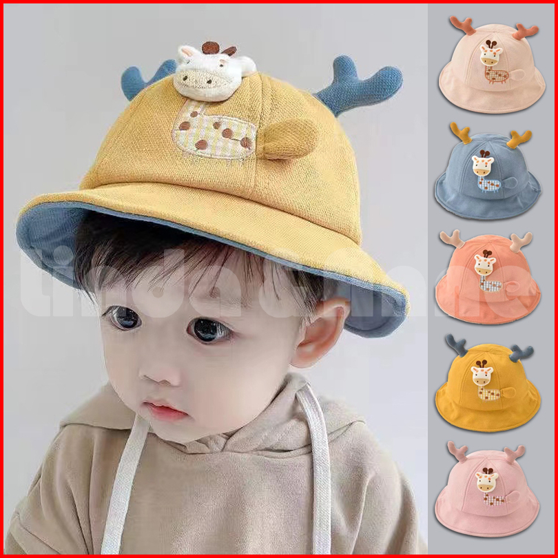 Topi Anak Bulat Bucket Hat Dengan Tali Aksen Tanduk Rusa Lucu - Babby Hat Fashion Trendy