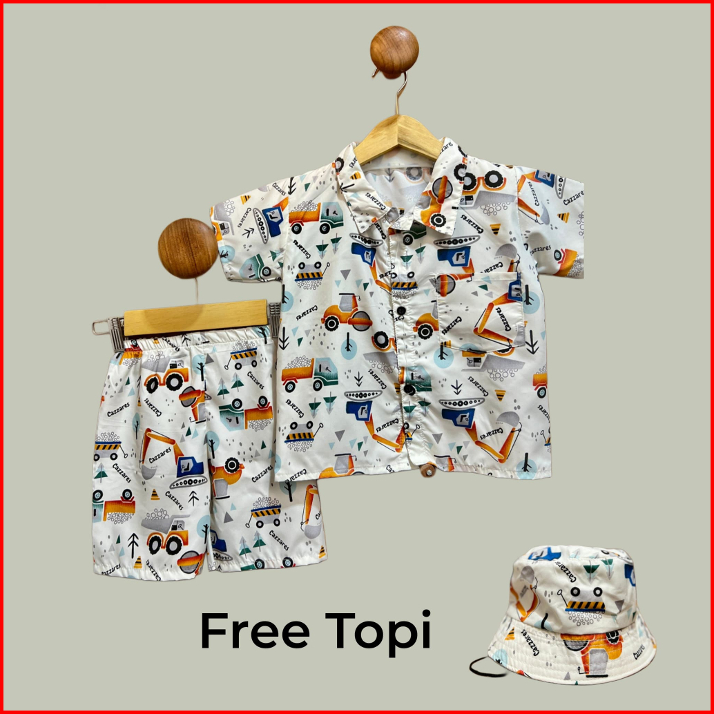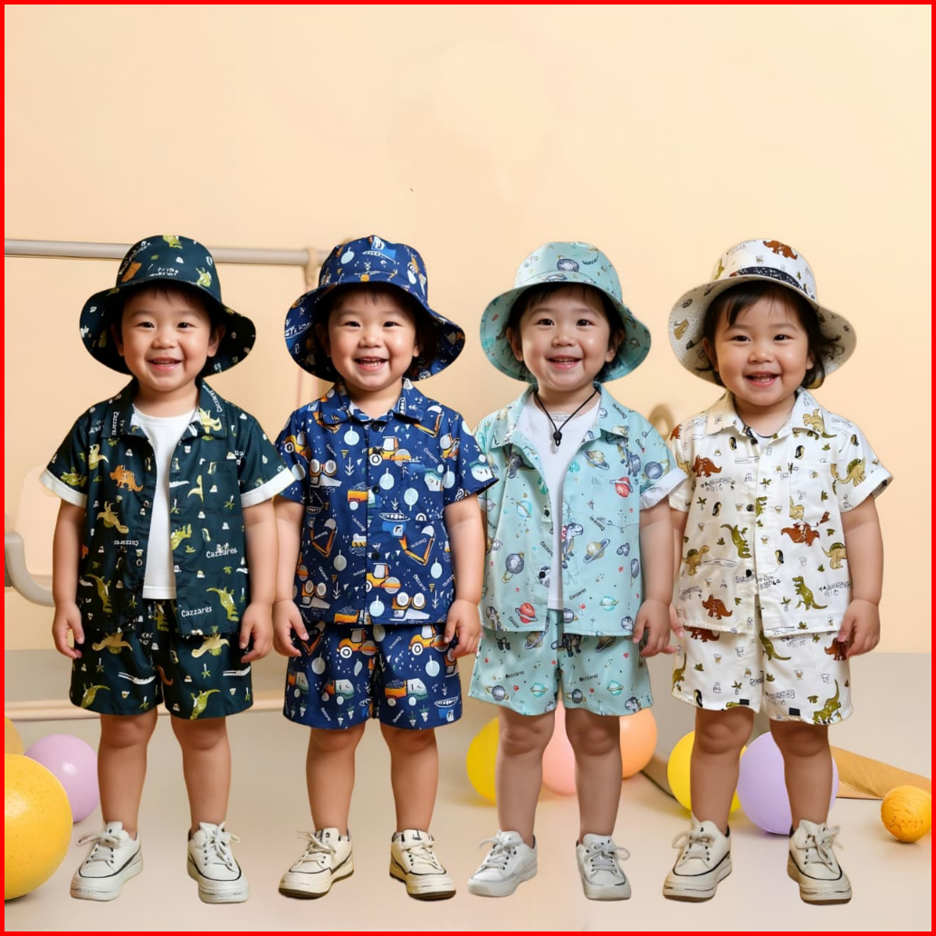 Setelan Baju Plus Topi Anak Usia 1-6 Tahun Laki-laki Dan Perempuan