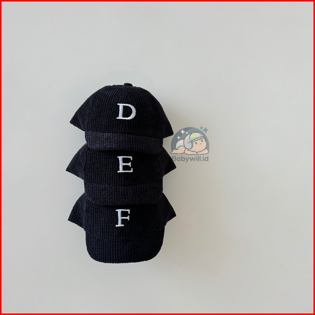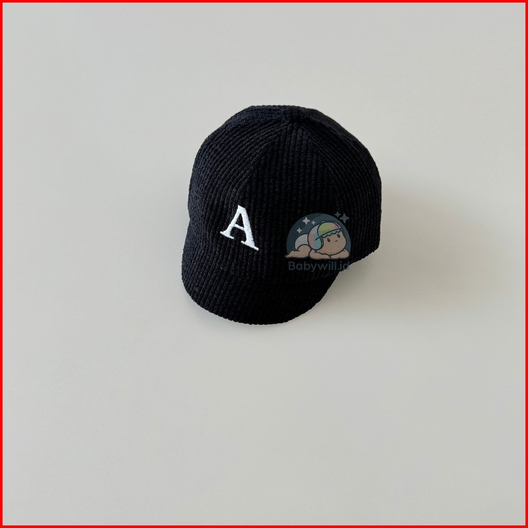 Topi Bayi Inisial A-z Lucu Corduroy Hitam 02 Tahun Topi Custom Anak Laki Perempuan
