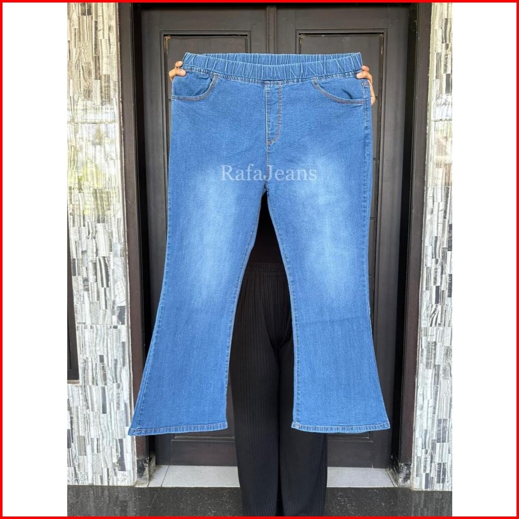 Celana Cutbray Pinggang Karet Jumbo Jeans Cutbray Bigsize