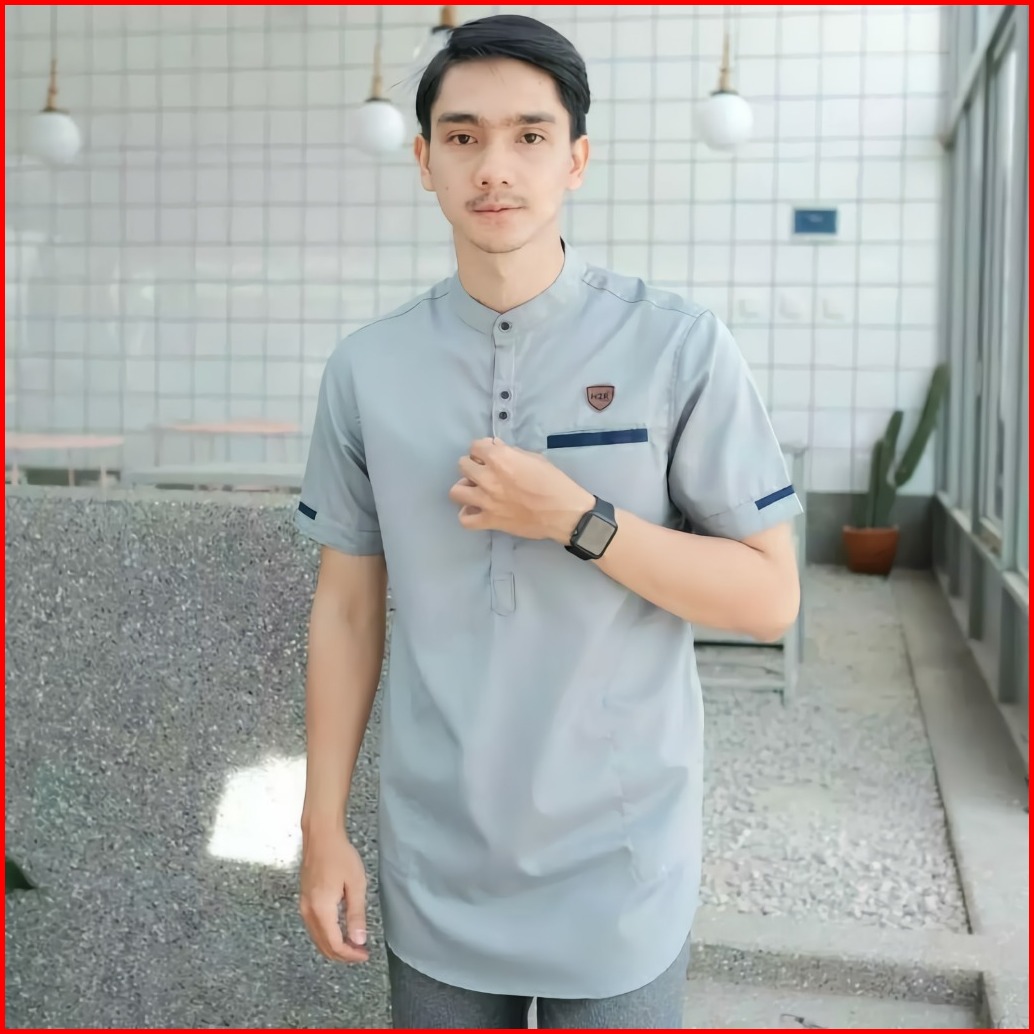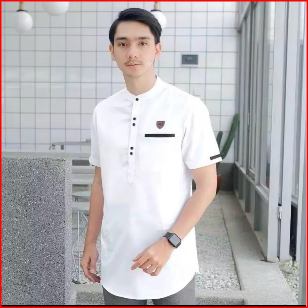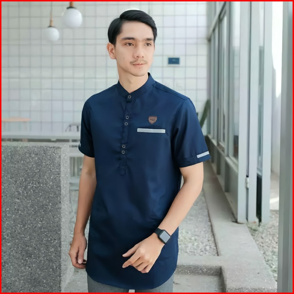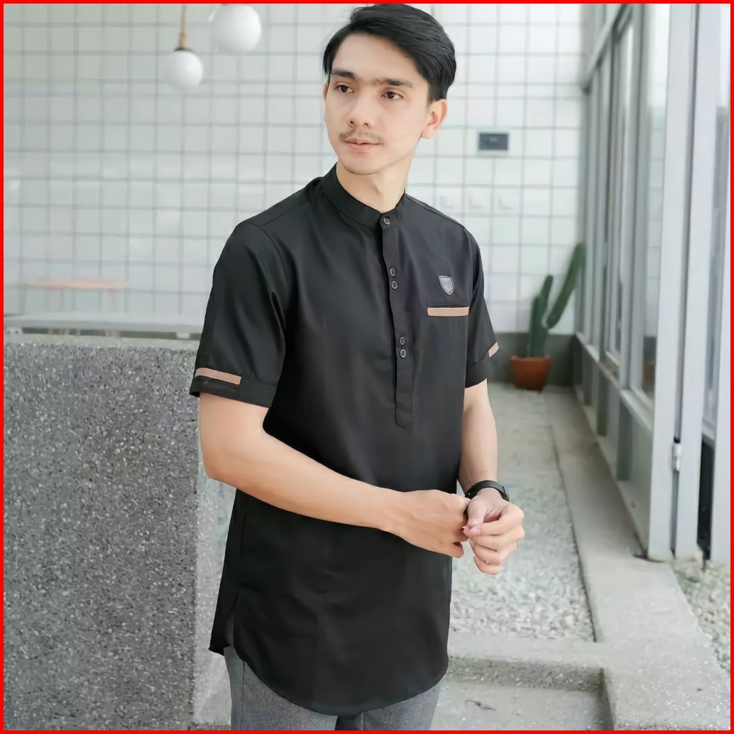 Kemeja Baju Koko Pria Kurta Muslim Lengan Pendek Katun Dewasa Kasual