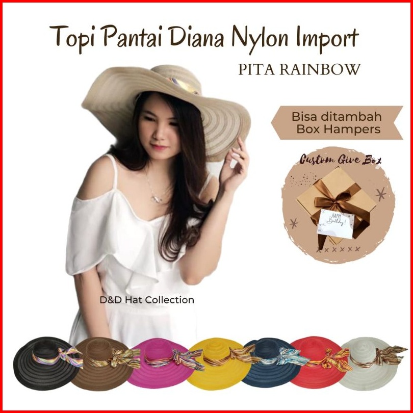 Topi Pantai Lebar Import Pita Rainbow