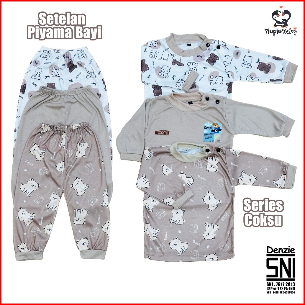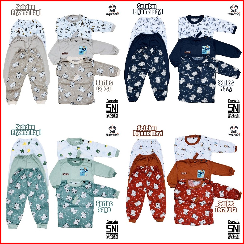 Paket 3 Stel Piyama Bayi Denzie Lengan Panjang Bahan Adem Nyaman Usia 324 Bln Sni