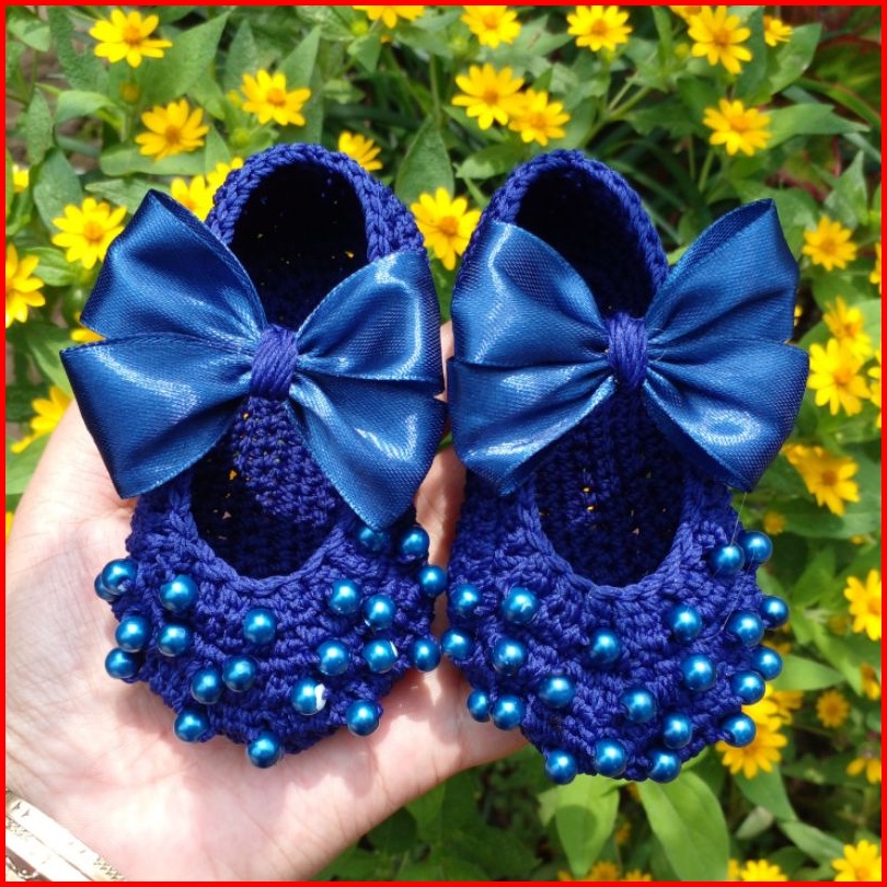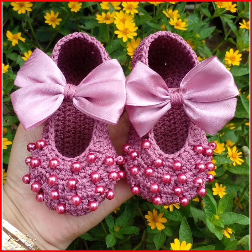 Catalog 1 Sepatu Bayi Perempuan Rajut Hias Pita Cantik Lucu Murah Bisa Custom