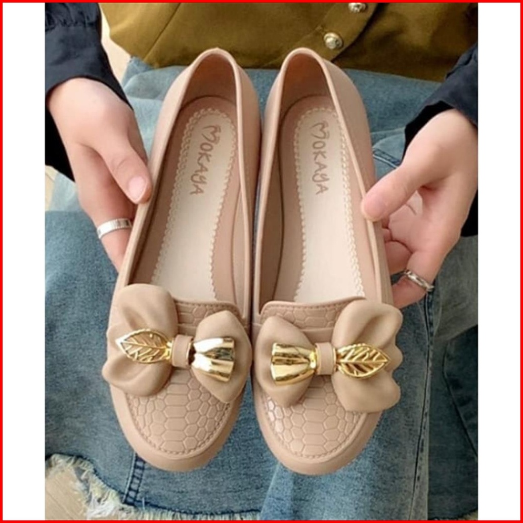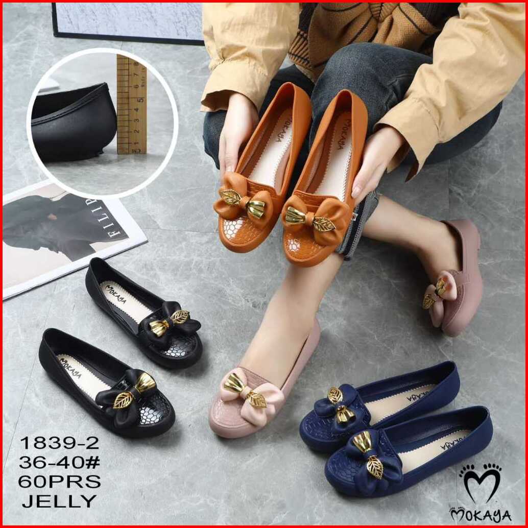 Sepatu Slop Jelly Wanita Korea Hias Pita Daun Super Pretty Simple Formal Import Mokaya Size 36-40 1839