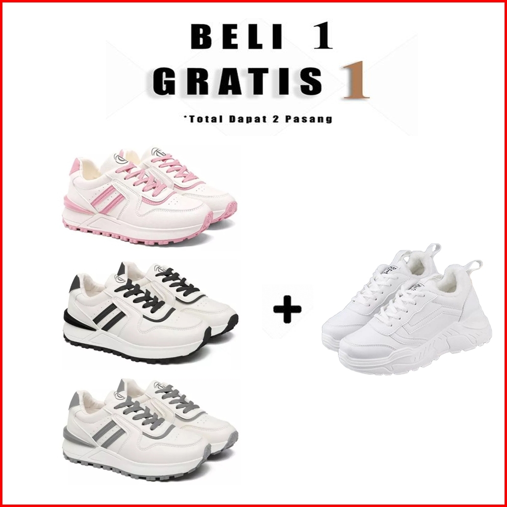 Beli 1 Gratis 1 Sepatu Sneakers Wanita Putih Promo Akhir Tahun
