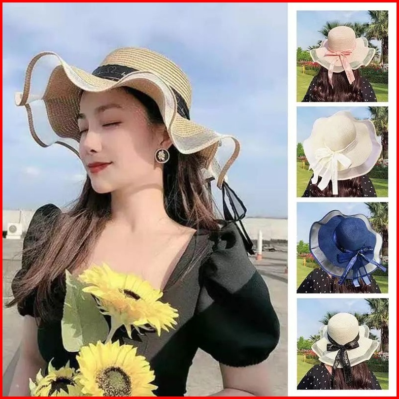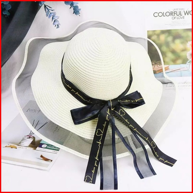Topi Pantai Gelombang Import Double Ribbon