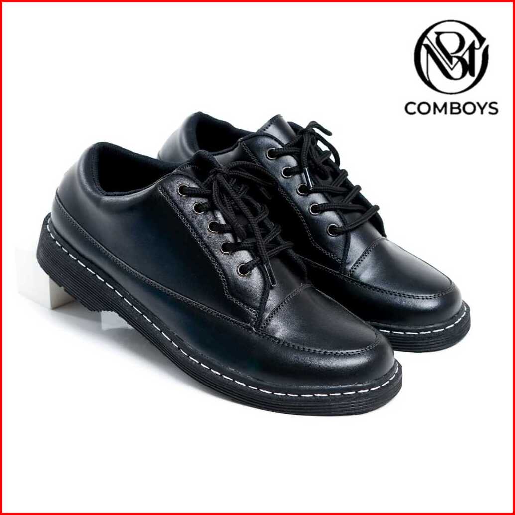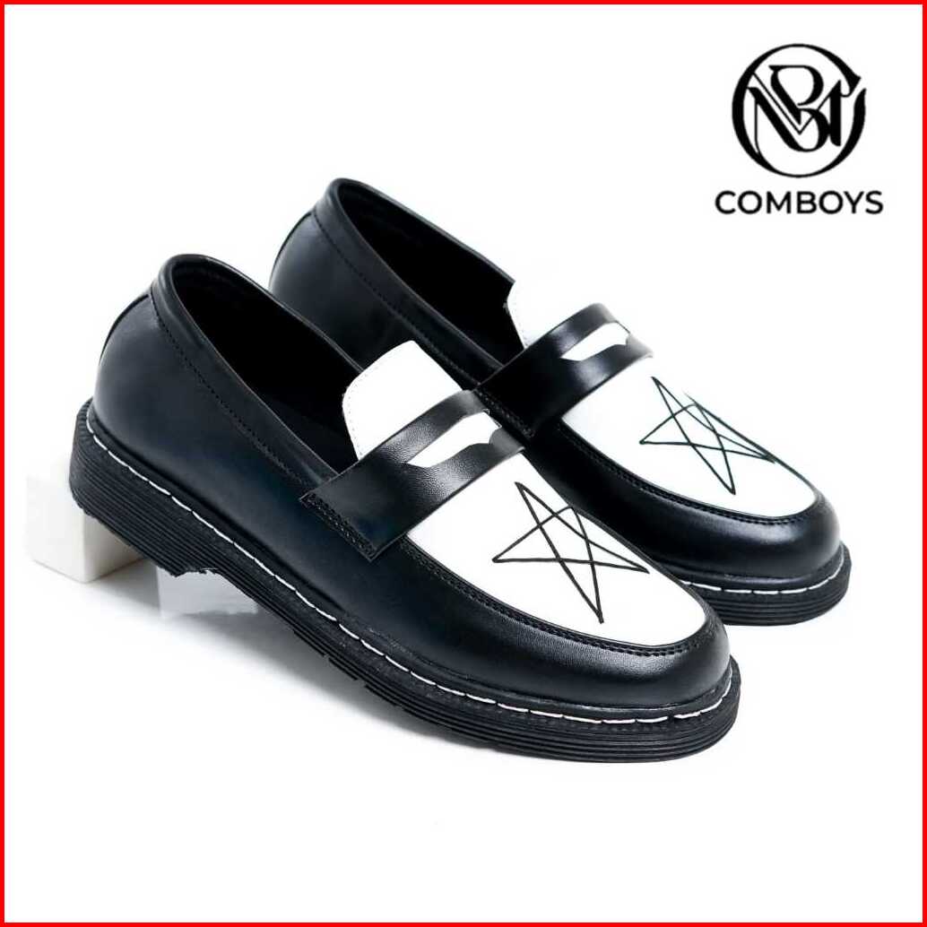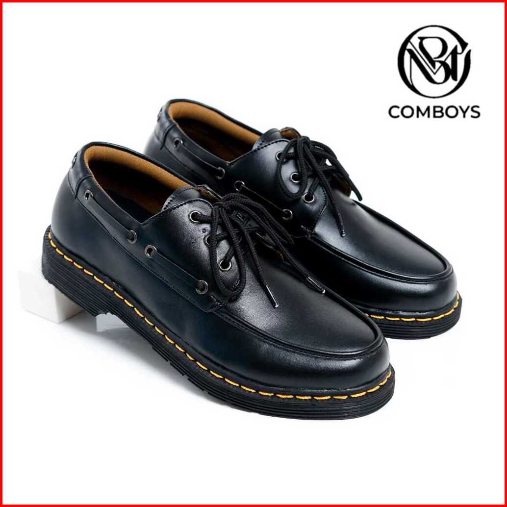 Sepatu Pria Formal Loafers Docmart Comboys Black Kulit Pu Pantofel Kerja Kantoran 01