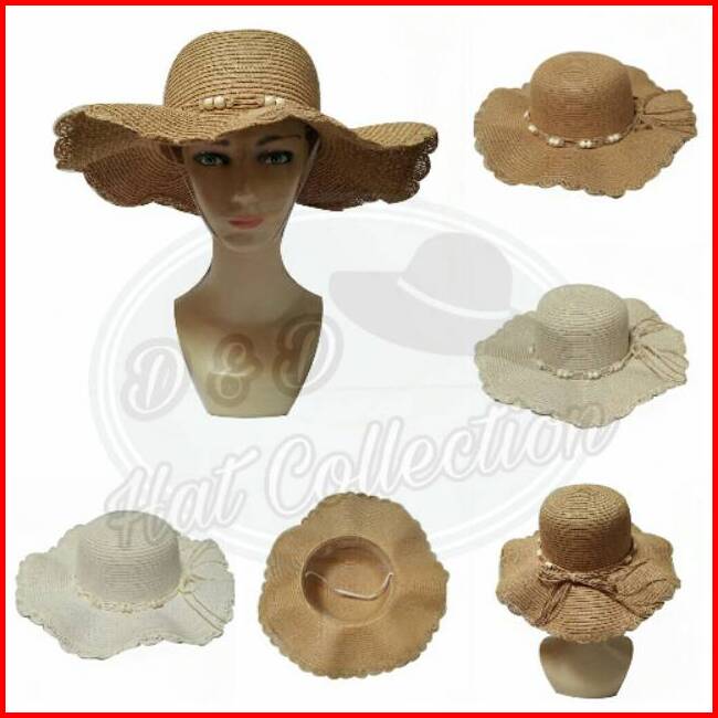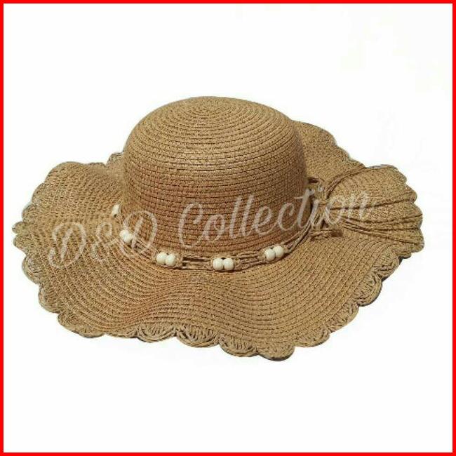 Topi Pantai Gelombang Import Manik Kayu Tali Kecil Topi Fashion Wanita