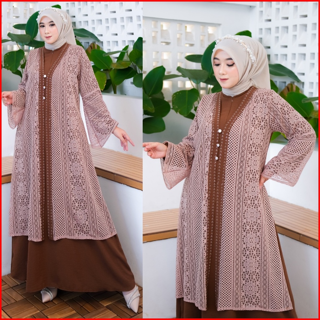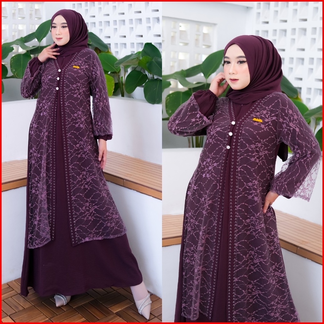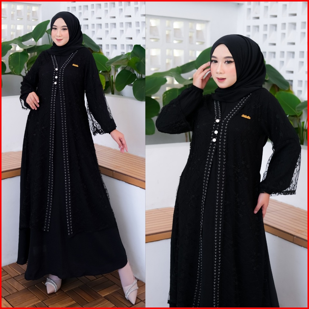Ready Set Kerudung - Zoeya Dress Abaya Kombinasi Brukat Mewah - Baju Muslim Wanita Remaja Dewasa Elegan