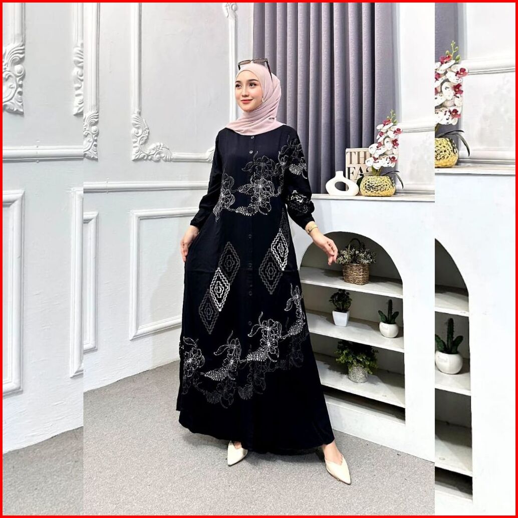 Naya Batik - Gamis Twill Ori Terbaru 2025 Pekalongan Motif Cap Malaman Dress Wanita Muslim Berkualitas Lengan Karet Tali