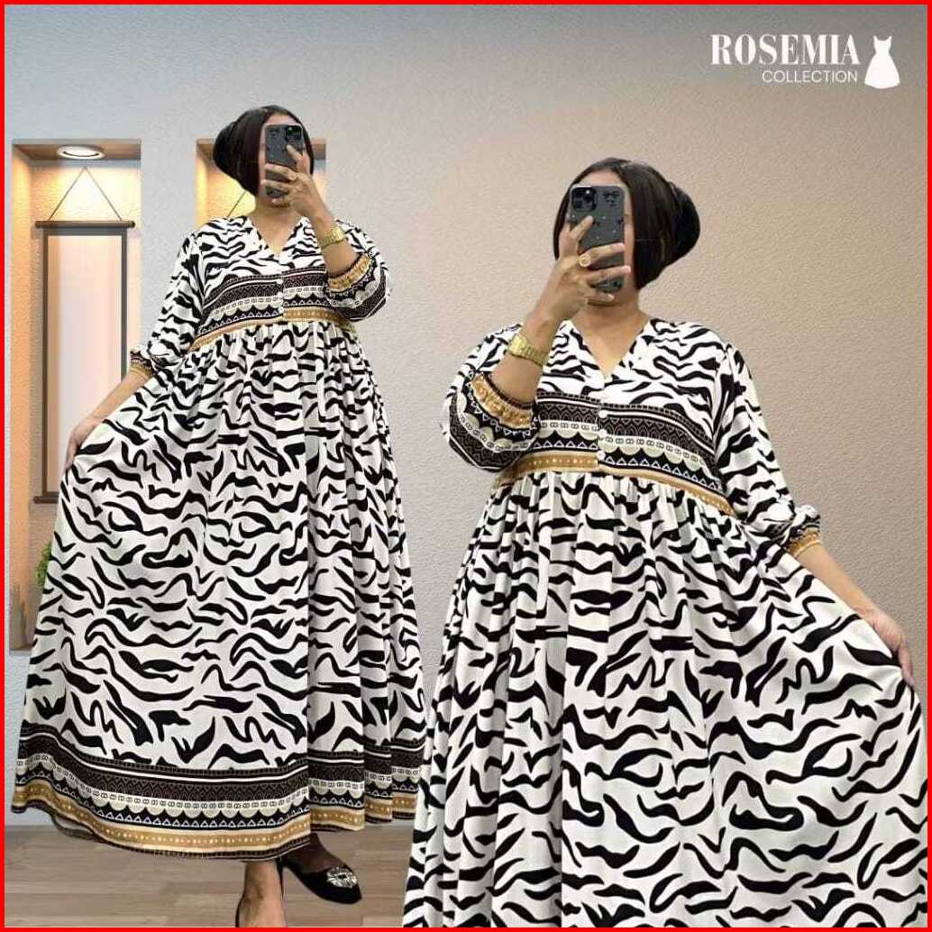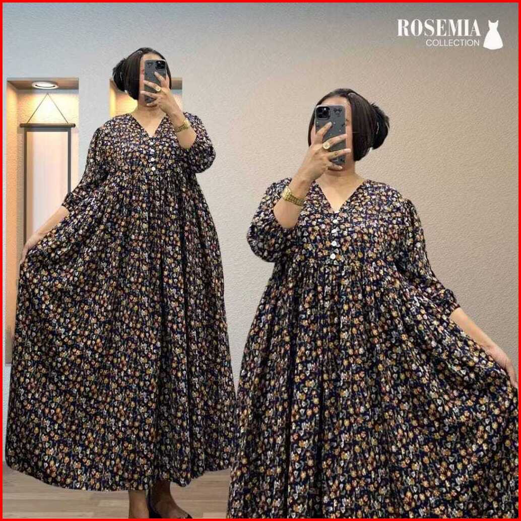 Tiara Midi Dress Rayon Premium Jumbo Lengan Karet Busui Kancing Wanita Muslim Kekinian