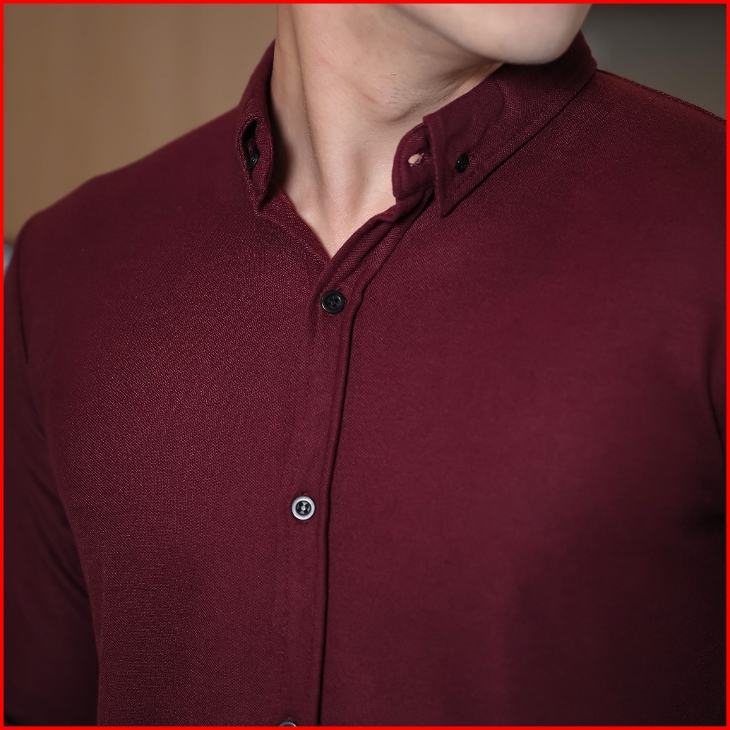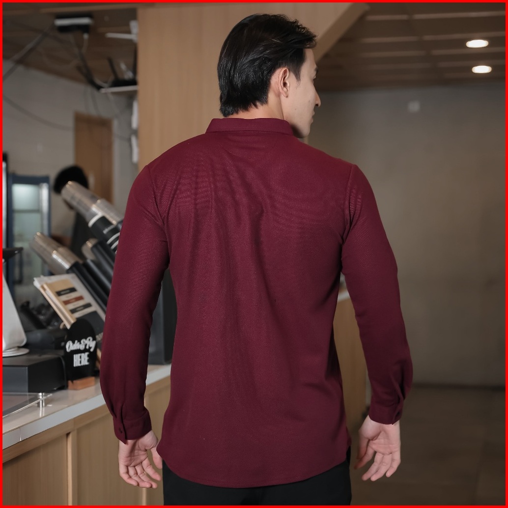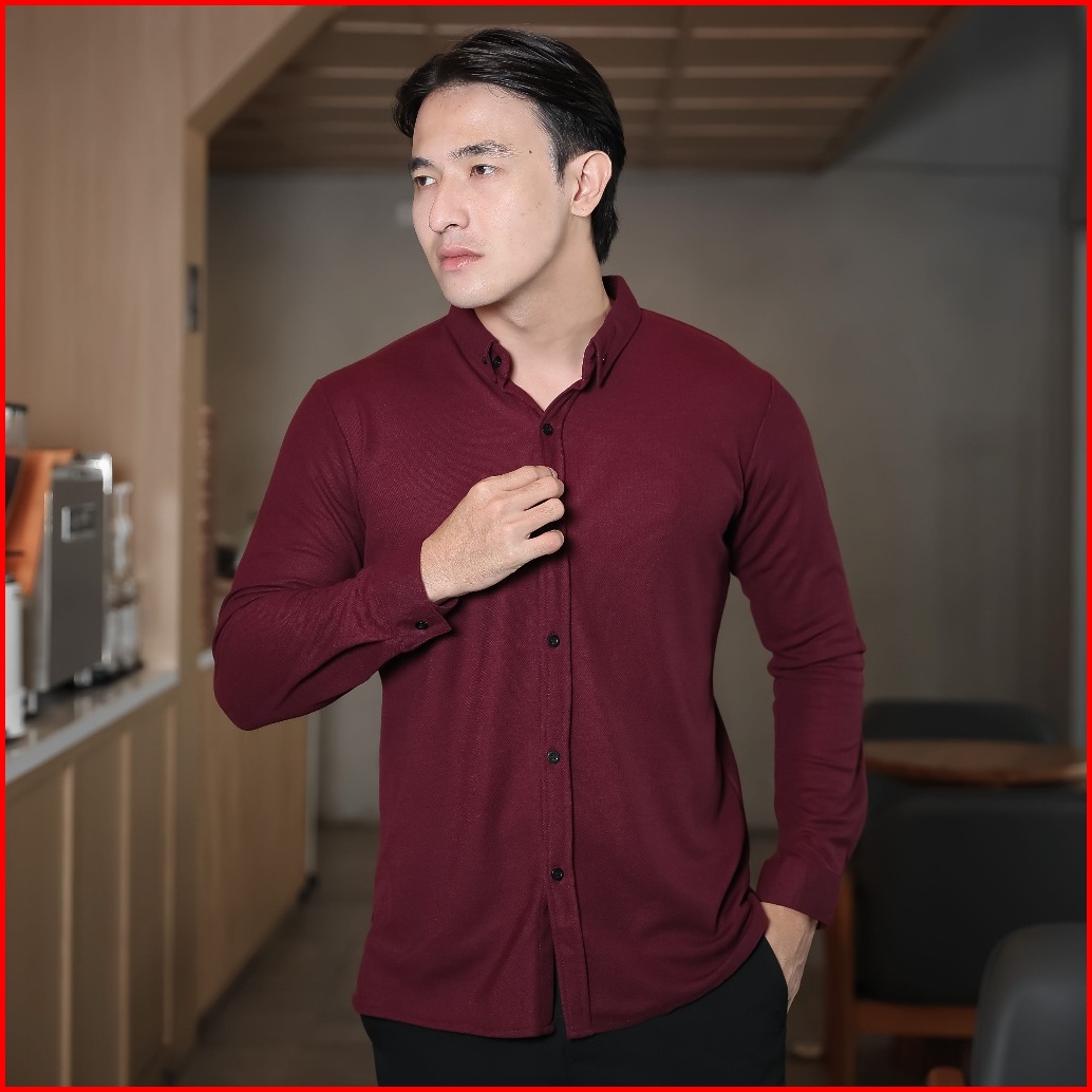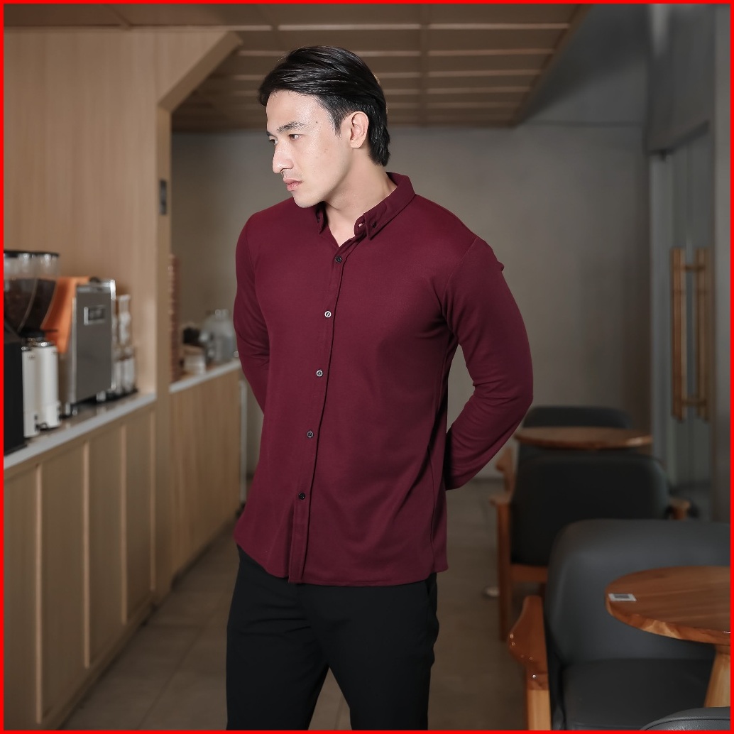 Stylelaki Lapique - Kemeja Burgundy Pria Formal Lengan Panjang Slim Fit Anti Kusut Nyaman Dan Lembut