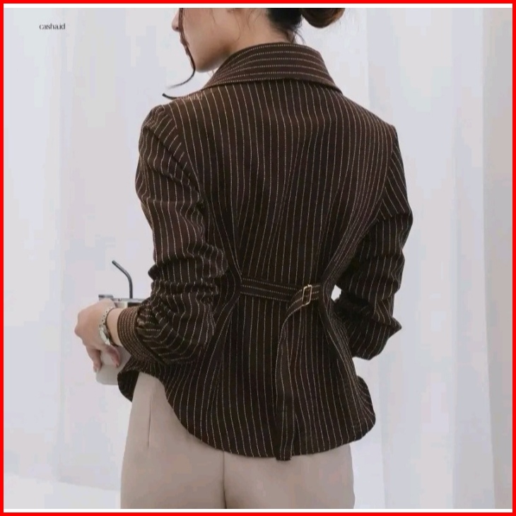 Kemeja Wanita Fitted Body Lengan Panjang Salur